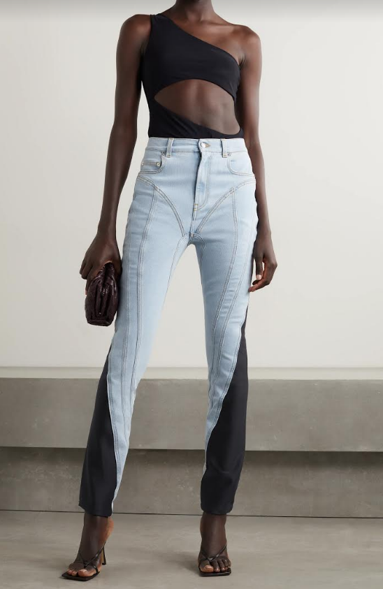 The pants are made from panels of stretch-denim and neoprene that are strategically sewn together to create a flattering, hourglass shape.