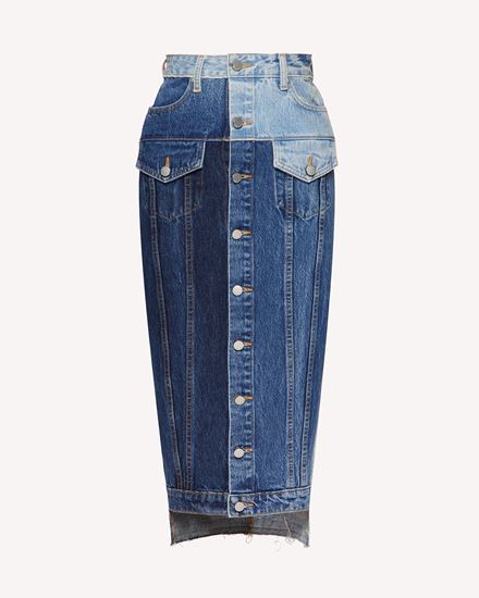 Skai Jackson wore a complete patchwork denim ensemble by RED Valentino including the brand’s $395 bralette top, $975 midi skirt, and $1,425 longline jacket. This particular look hails from the brand’s Spring/Summer 2021 ready-to-wear collections and appears in patchwork design complete with various types of denim. The different shades of denim conveys an individual yet universal feel for outfit.