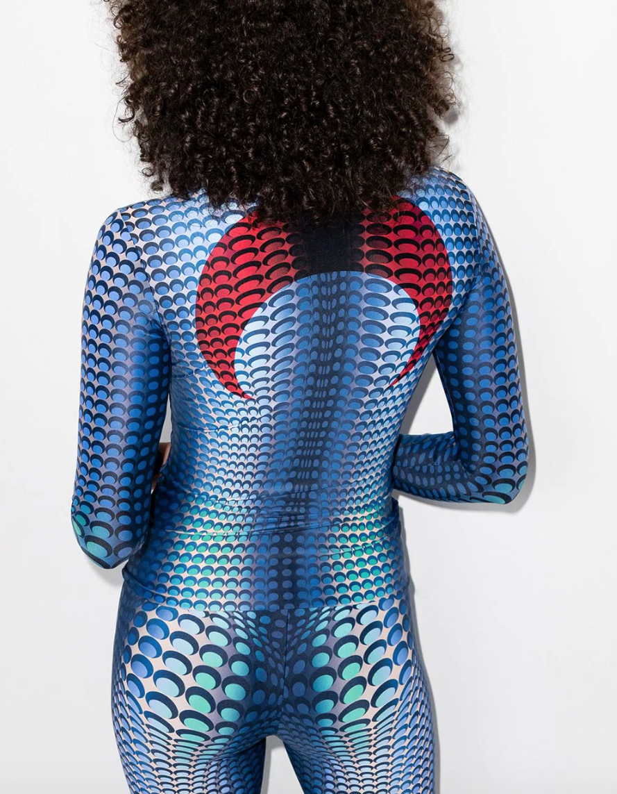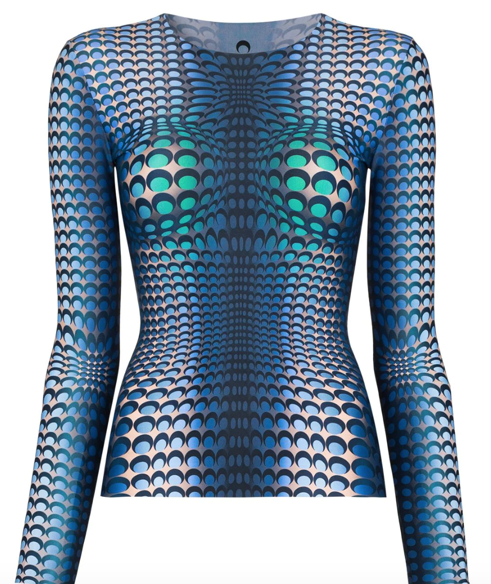 Embellished with an SS21 iteration of their iconic crescent moon print, this Moon Skin Fish top and leggings from Marine Serre are constructed from OEKO-TEX certified jersey for a second-skin-like fit and finished with a repetitive pattern resembling fish scales for added texture and dimension. Its stretch design turns this statement piece into the perfect blend of streetwear and athleisure.