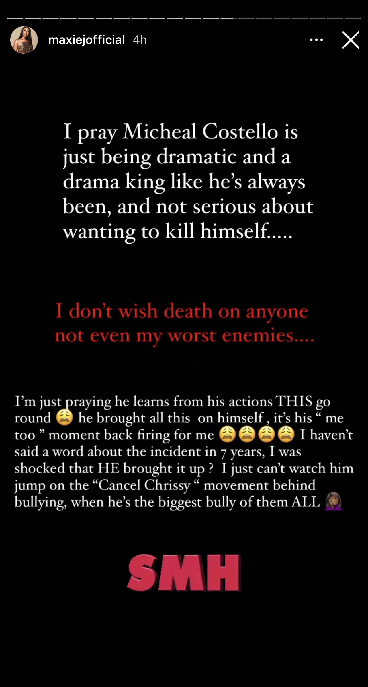 Ellaè Lisquè designer Maxie J commented under our post highlighting the story, recalling an incident between her and Costello which resulted in the two apparently coming to blows in a fabric store. She shares, “But he’s not telling the whole story which is absolutely making my skin crawl, he was getting blacklisted for calling me the ‘N’ word twice, once online and once in person. He was able to get his PR team to turn it around and claim ‘photoshop’, but then a year later, I see him a fabric store and he calls me the ‘N’ word to my face. We had a whole fist [punch emoji] fight in the fabric store and everything [palm face emoji]. I didn’t even know this man and I was brand new to the industry, he continued to bully me 7 years ago and now he wanna claim victim? He really needs to chill, DRAMA king at his finest.“