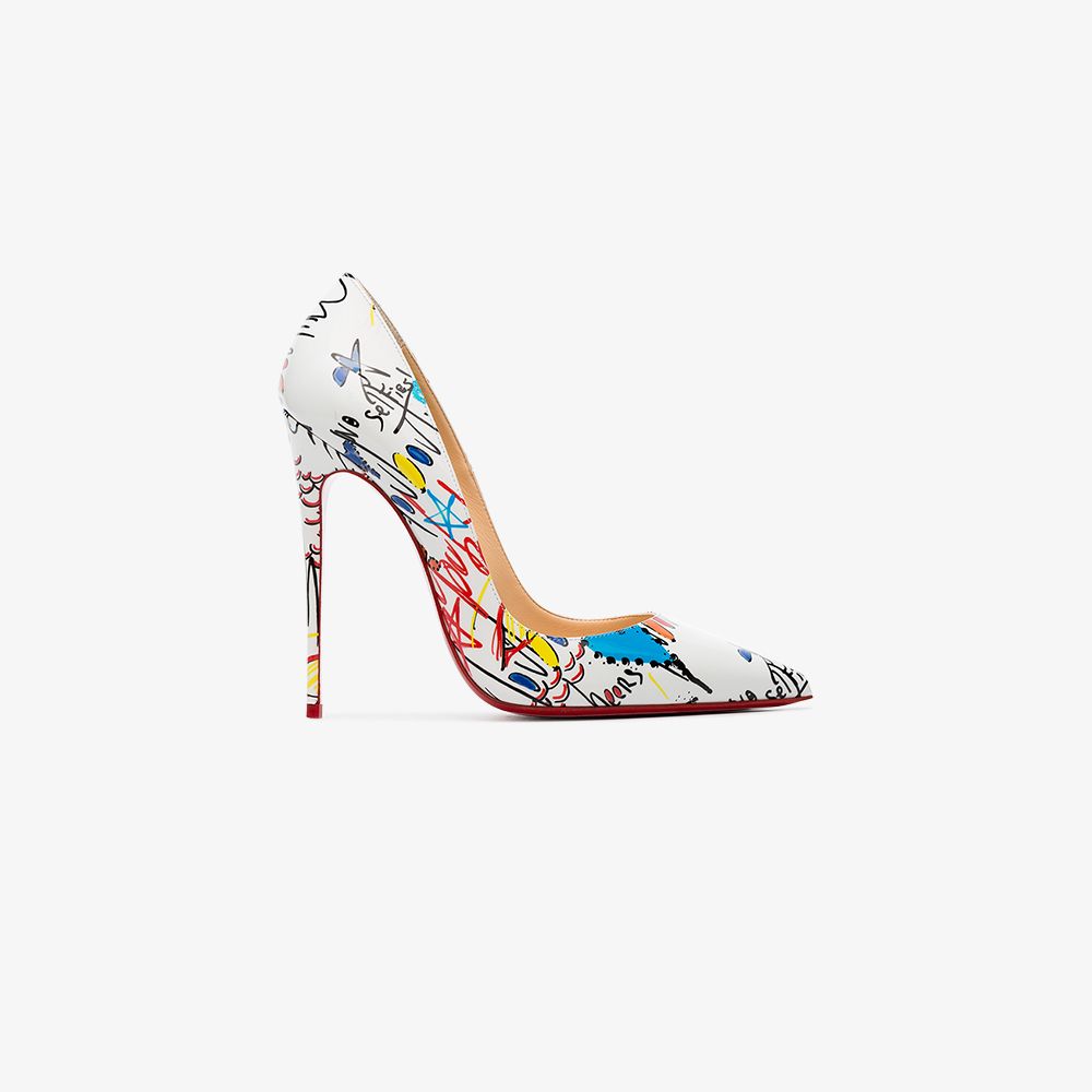 Trina showed up to the Verzuz battle rocking a look by LaQuan Smith. From his Spring 2021 collection, she wore the brand’s $795 Tuxedo Bodysuit in scarlet and $1,650 Moto Pants in hot orange. She completed the look with a limited edition pair of Christian Louboutin pumps (You can achieve a similar look with Louboutin’s Graffiti So Kate pumps, pictured below and available at Browns Fashion by contacting one of their style advisors). In the picture, she posed as two men held custom name “Trina” umbrellas over the rapper. Her look was styled by K. Cavallrii.
