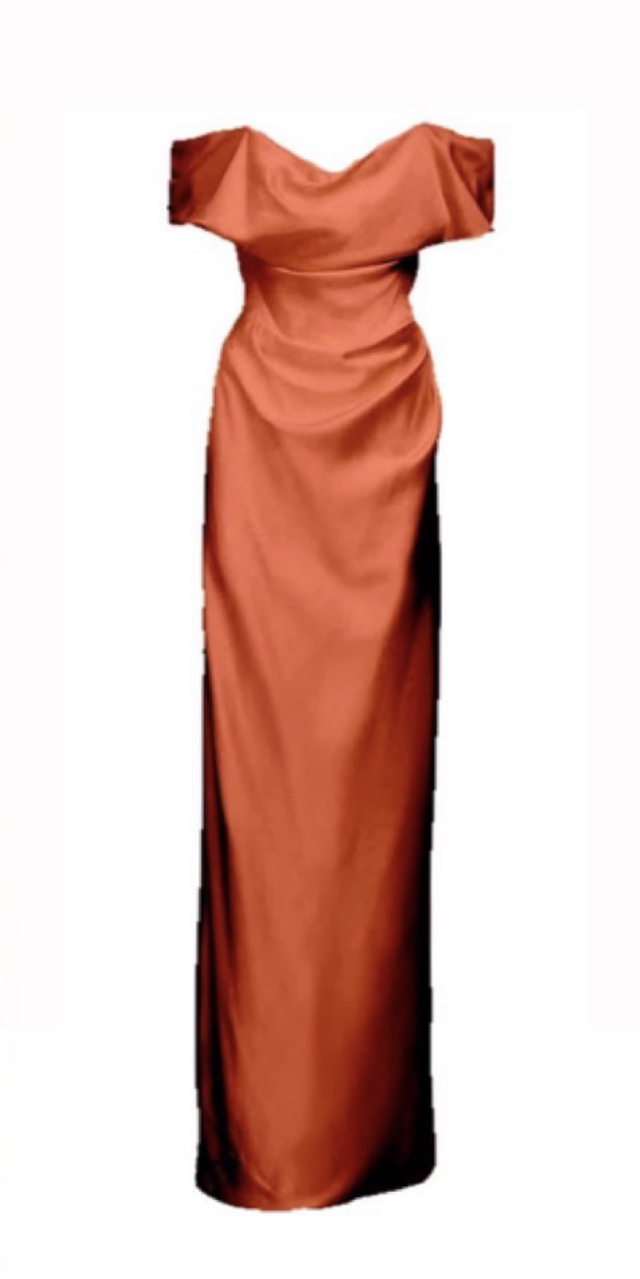 Kim Kardashian wore a custom Vivienne Westwood Cocoette Dress in copper paired with Manolo Blahnik “Leva” sandals (sold out) and custom diamond cross necklaces and pear diamond earrings by Lorraine Schwartz.