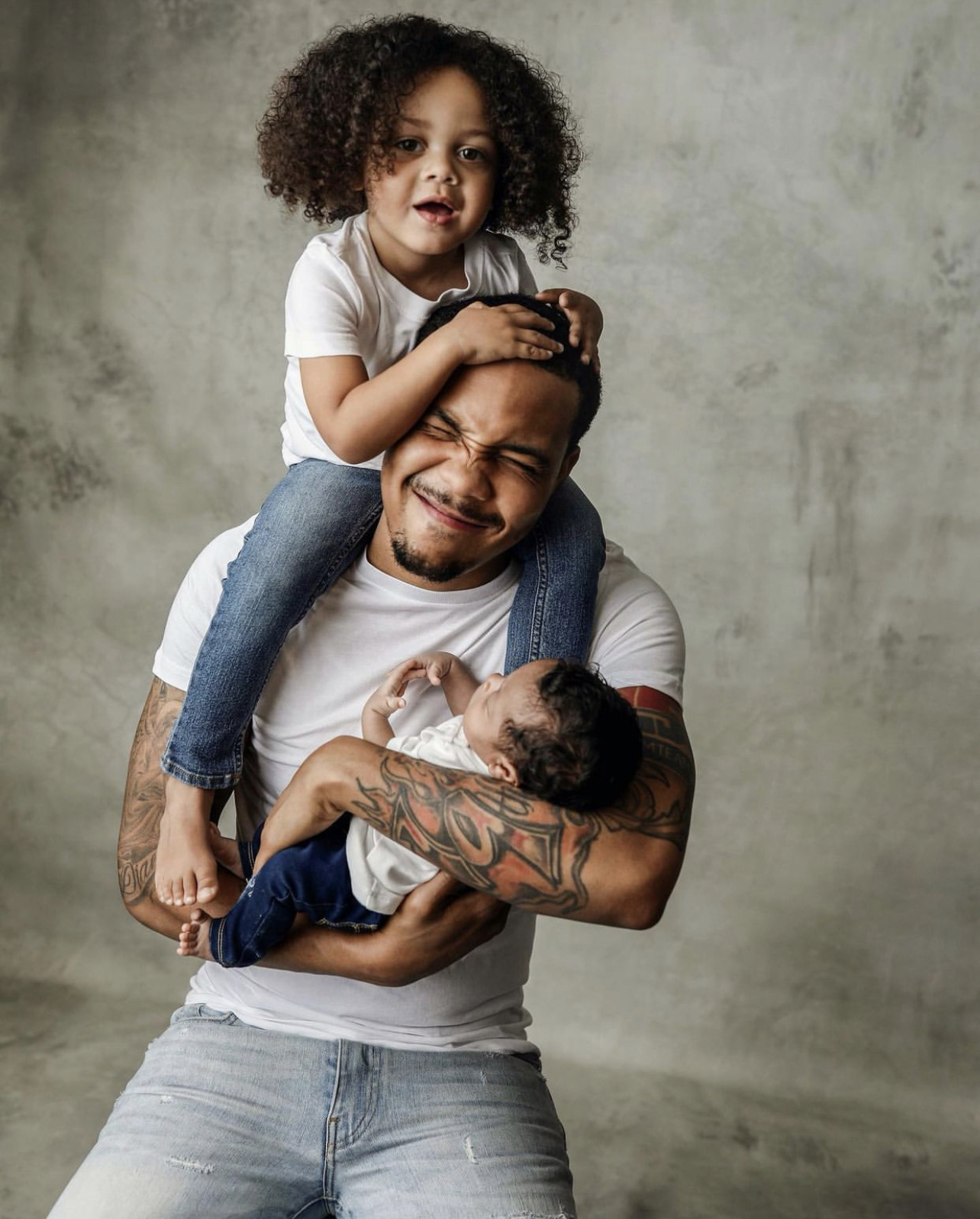 For the shoot, G Herbo and his sons wore white tees and denim pants to match each other!