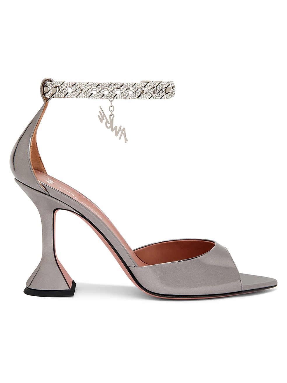Toya Bush Harris wore a gown by Riley Knoxx paired with $1,550 Amina Muaddi x AWGE Flacko Crystal-Embellished Chain Leather Sandals in grey. She complete the look with a minimal jewelry and a jewel-embellished hairstyle.