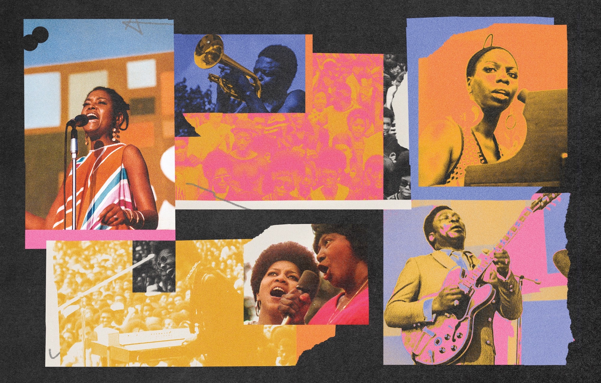 As a 5x GRAMMY Award-winning founding member of The Roots, Questlove was the perfect choice to helm this documentary. A film buff and avid storyteller, the neophyte director tackled this project with the adroitness of a DJ extraordinaire. His thoughtfully selected performance and crowd footage interspersed with clips of civil unrest and snippets of speeches by iconic Black leaders edited with flawless transitions powerfully tells the story of the Summer of Soul. The healing and empowering role of music in the movement is present throughout the cultural festival documentary. It is portrayed as both a release for our rage and a panacea for our pain. One of the most poignant moments in the film surrounds Jesse Jackson’s riveting first-hand account of the moment Dr. Martin Luther King, Jr. was assassinated in 1968. After Jesse speaks, gospel legend Mahalia Jackson, overcome with emotion, passes the mic to Mavis Staples for a little help singing a soul-stirring rendition of “Precious Lord.” Mavis’ guttural and gritty runs tap into the pain before Mahalia takes the microphone to belt out a fervent cry to the Lord for help. As the song concludes, their dueling ad-libs are more shouts of acclamation and bolstered determination rather than hopelessness and defeat. The power of gospel music then and now cannot be denied. Its triumphant battle hymns and melodic testimonies of overcoming have and always will be a cathartic balm for our weary souls. Many of the performances in the film – including Sonny Sharrock’s electrifying guitar solo and The 5th Dimension’s performance of their No. 1 hit “Aquarius/Let The Sunshine In” – also bear witness to the power of Black music to uplift and heal us.![]()