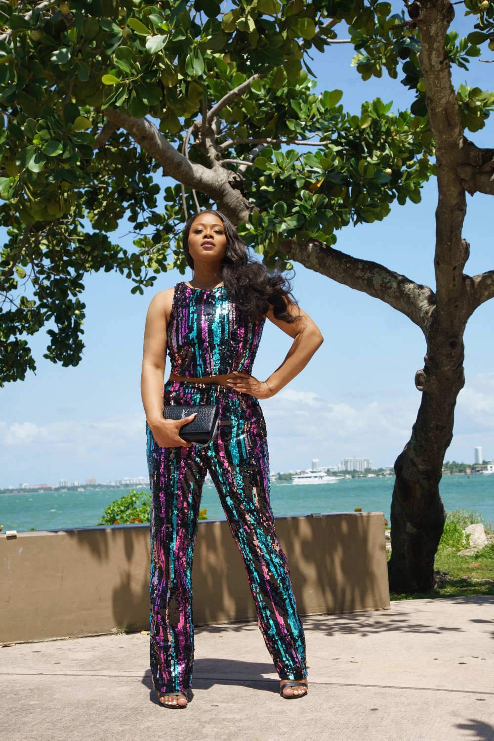 With our favorite places opening back up after a year, what better way to celebrate a return to normalcy than with sparkling sequins. Rock the $489 Keylows Miami Vice Multicolor Sequin Crop Top and Pants Set as you step out with your girls. This look is perfect for celebrating being back “outside”!
