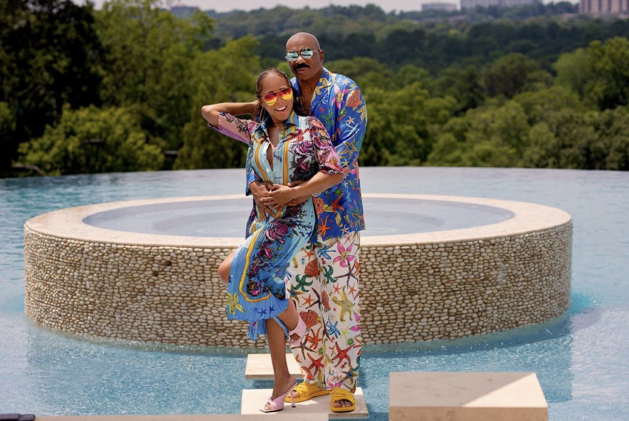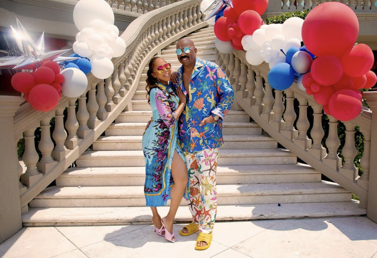 The Harvey family celebrated the Fourth of July with a get together surrounded by family and close friends. Of course, Steve and Marjorie Harvey served as the hosts for the celebration and did so in such a fashionable manner. The two were spotted at the event donning stylish silky looks by Versace.