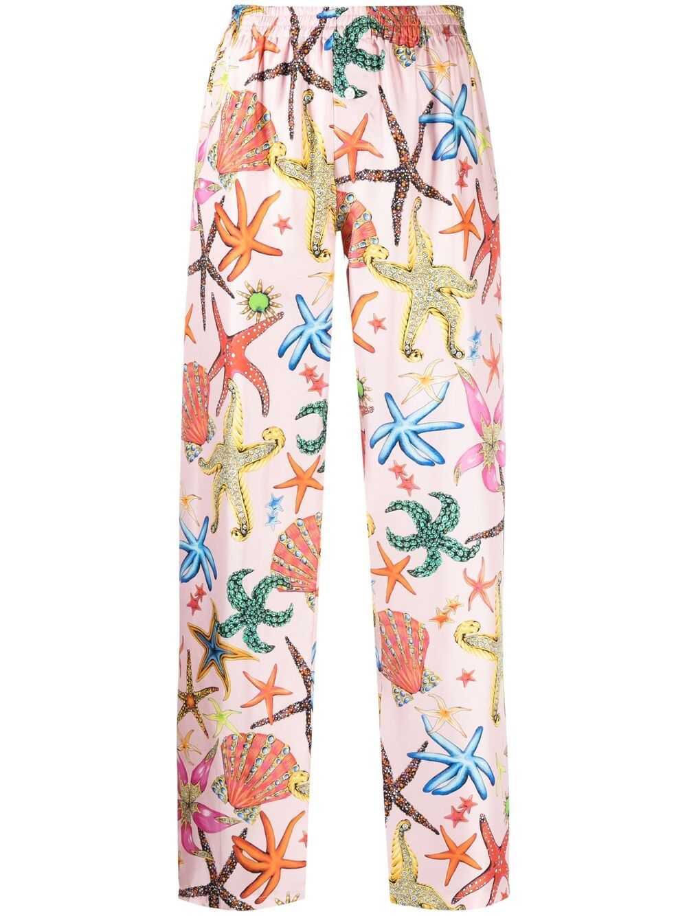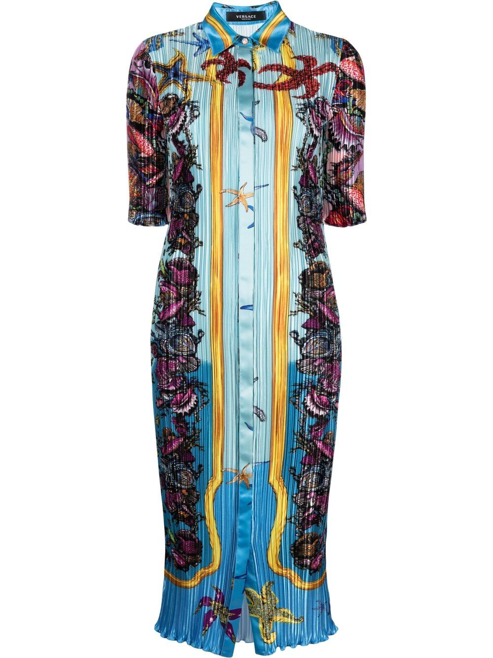 Both Steve and Marjorie Harvey’s looks appear in Versace’s Spring/Summer 2021 collection. The two’s pieces feature the brand’s Trésor De La Mer pattern which includes an allover starfish print design. The collection makes a splash into summer, perfectly capturing the season’s feels with ocean-inspired graphics and Italian silk.