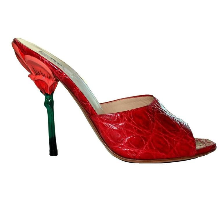 Kim Kardashian wore the $685.10 Clio Peppiatt “Leo Skirt”. paired with a $375 Giu Giu “Nonna” pearl cardigan and Prada Crocodile Flower Heel Mules (unavailable in red, but the black version is available for purchase on 1st Dibs for $1,299). She opted for bone straight tresses for her hairstyle of choice.