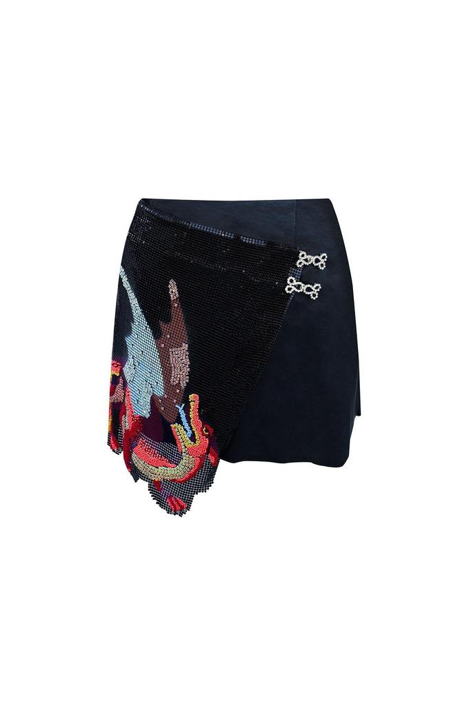 The Clio Peppiatt medieval tapestry-inspired pieces are definitely show-stoppers. Garments present themselves in dazzling embroidered designs which include hand-drawn motifs like dragons, knights, and angels based on the tapestries from the specified era. Pieces such as the Leo Skirt (as seen on Kim Kardashian) and the Louis Mini Dress (as seen on Duckie Thot) carry such designs. Let’s see how Kim and Duckie styled their Clio Peppiatt pieces: