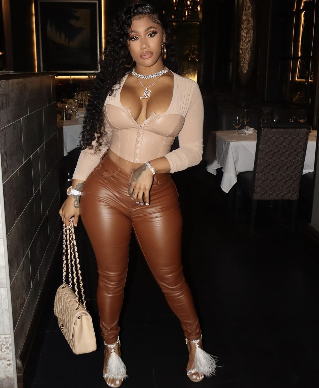 Recently, Lira Mercer was spotted at a restaurant for a night out. The mom-preneur struck a pose in a brown and nude look which included brown faux leather pants by Fashion Nova.