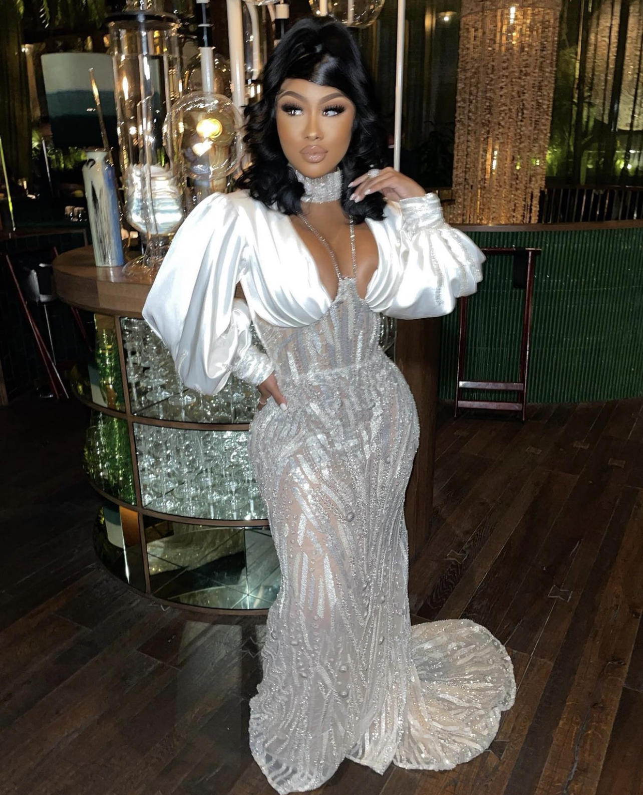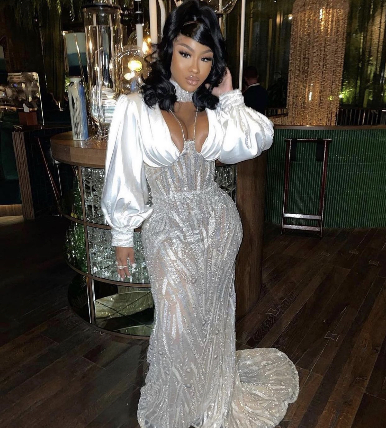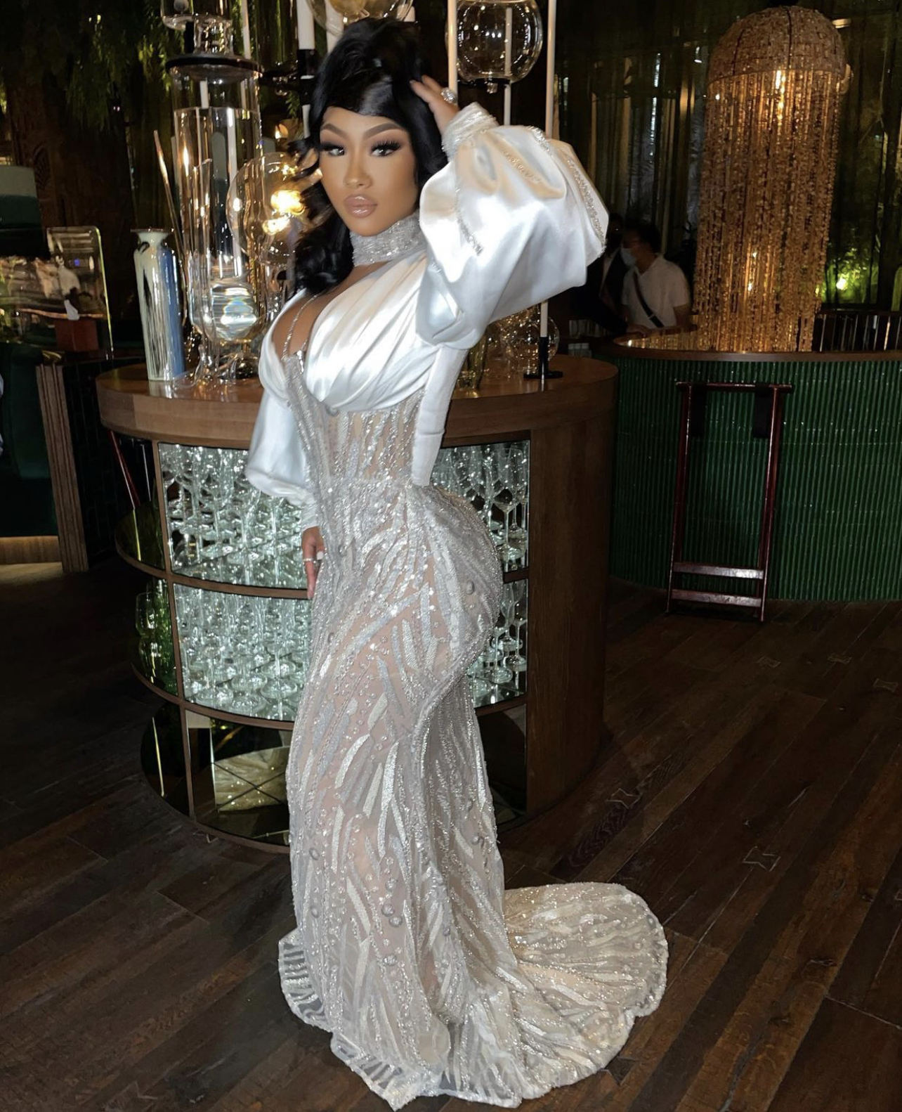 Ari also had a huge party on her actual birthday in Atlanta, Georgia where she joined by friends such as hairstylist Arrogant Tae, her beau Moneybagg Yo, and more. For her birthday bash, she wore a crystal look by Shane Justin. The look consisted of a crystallized mesh cutout bodysuit complete with a sexy pair of white crystal-embellished PVC strap heels. According to Shane Justin, he actually created five different looks for her in under 24 hours of her outfit request, but this particular ensemble took the cake.
