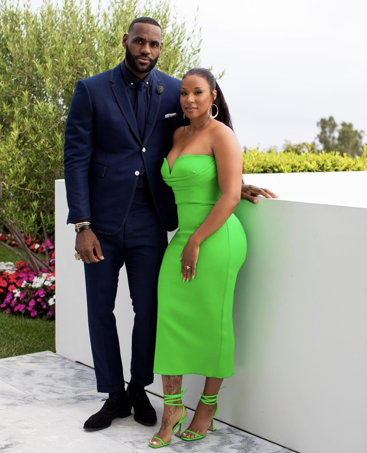 Taking the spot for our most engaged and liked look this week, Savannah James beamed in an all-green ensemble while attending the Space Jam: A New Legacy premiere in LA with husband and star of the film LeBron James and daughter Zhuri James. She donned the $1,200 Alex Perry “Darcy” strapless midi dress paired with $745 Amina Muaddi “Vita, both of which appeared in a popping green hue. Her look for the premiere was styled by Kahlana Barfield Brown.