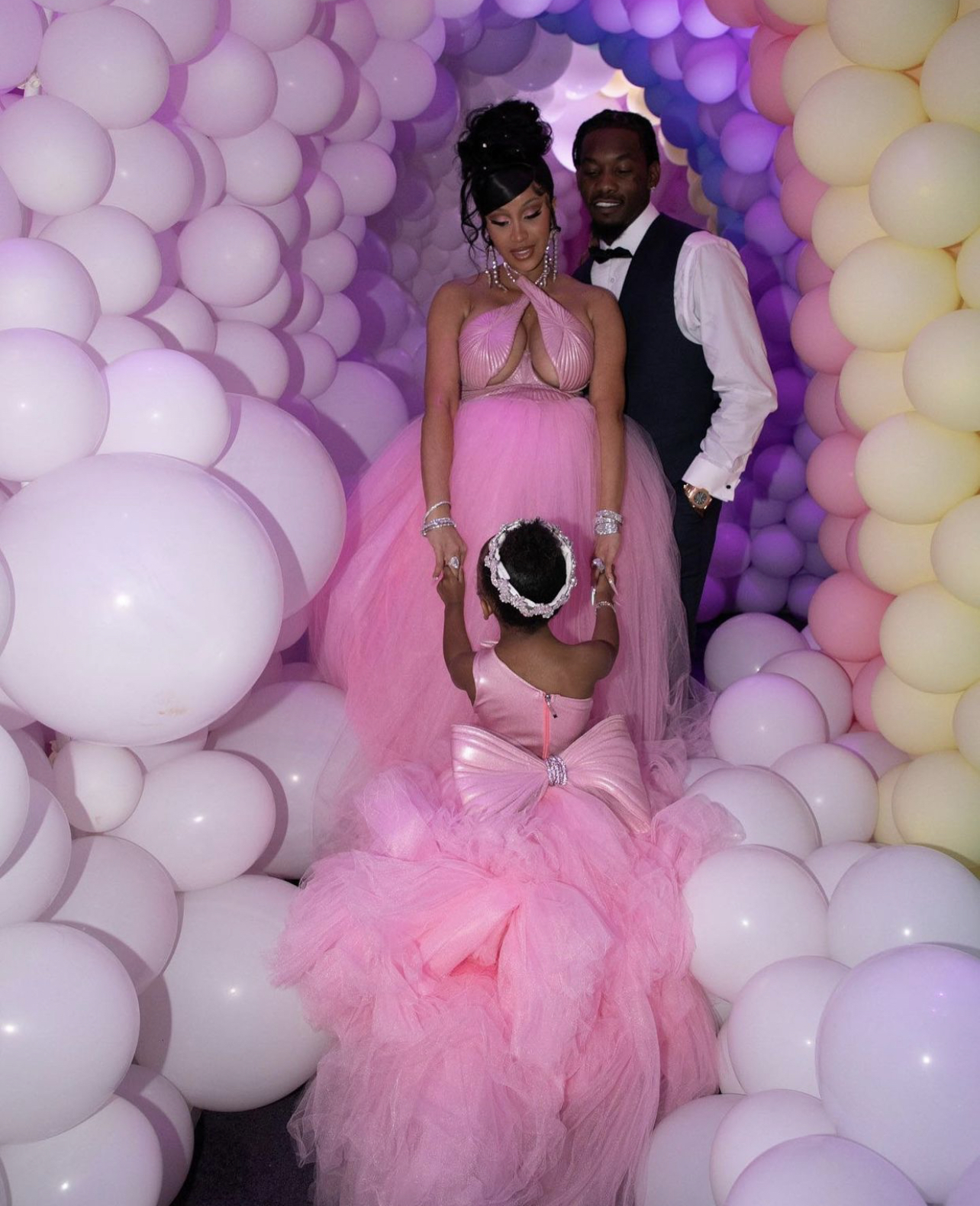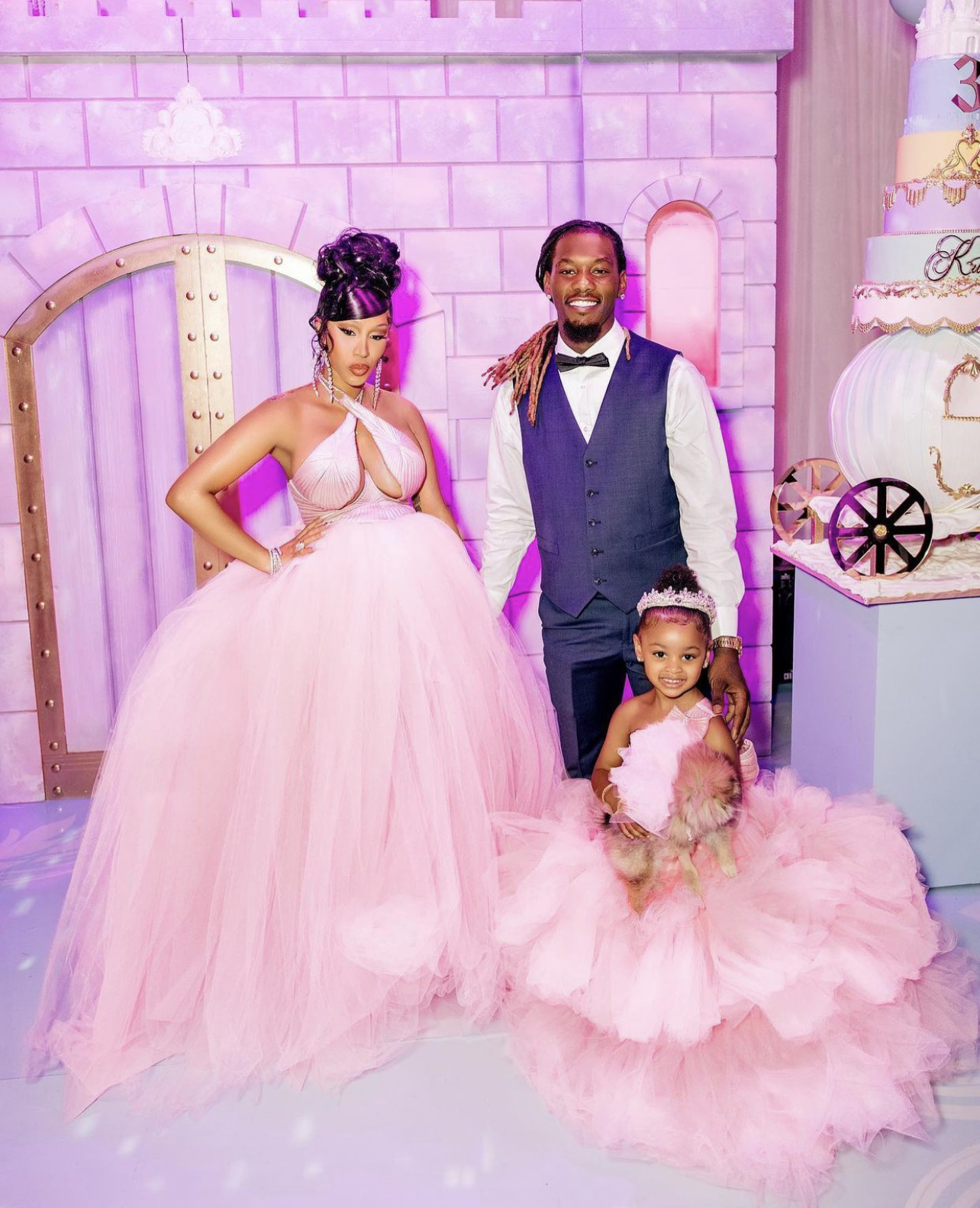 As Kulture celebrated her third birthday, Cardi B and Offset threw their youngest a princess-themed birthday party which was filled with all the details straight from a fairy tale. For the party, Cardi B and Kulture wore custom dresses by Rey Ortiz complete with fluffy pink tulle fit for two ladies of royalty. For Kulture’s look, she also wore a custom crown by Laurel DeWitt which happens to be the same crown worn by her during the 2019 photoshoot for Offset’s FATHER OF 4 album. Both looks were styled by Kollin Carter.
