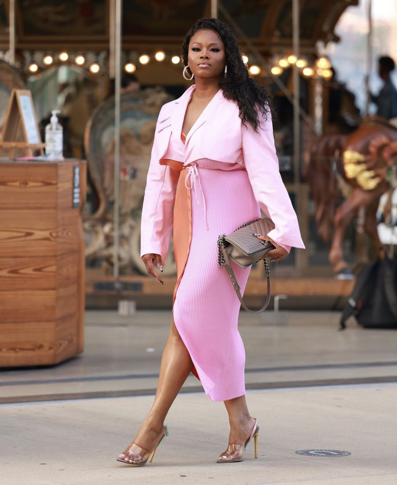 In need of style inspo? Take notes from Claire Sulmers as she was recently spotted in the new SybG Perfect Match PVC Sandals paired with a pink and orange look by Staud and GOLD x TEAL.