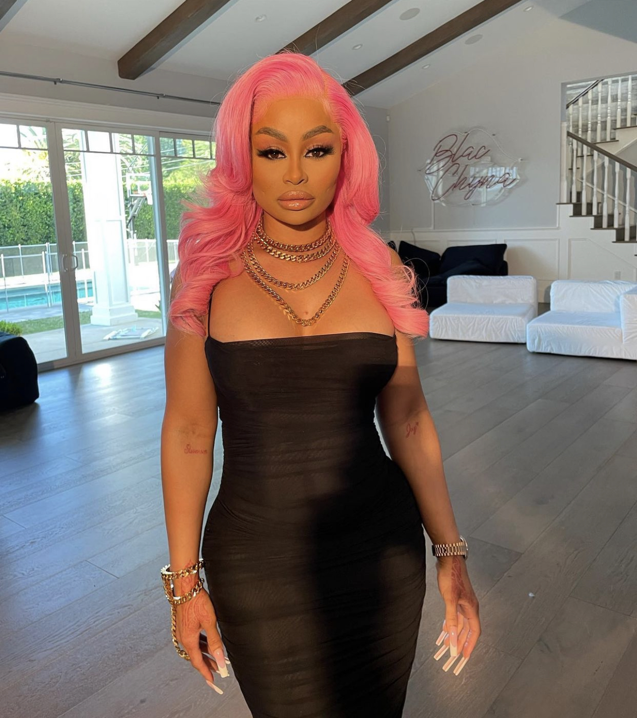 Blac Chyna recently debuted a new pink hairstyle while rocking a black mesh dress from Fashion Nova. Let’s get into her look:
