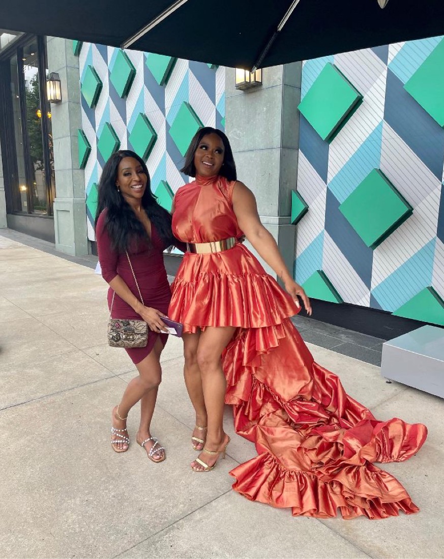 Co-host Claire Sulmers attended the event in a show-stopping high-low orange dress by London Couture, which is now available at the BeautyLifeFun Shop! She paired the gown with SybG On A Pedestal Mules Sandals, available on beautylifefunShop.com for $98. Her makeup was slayed by Latasha Wright with hair by Anthony Wilson.