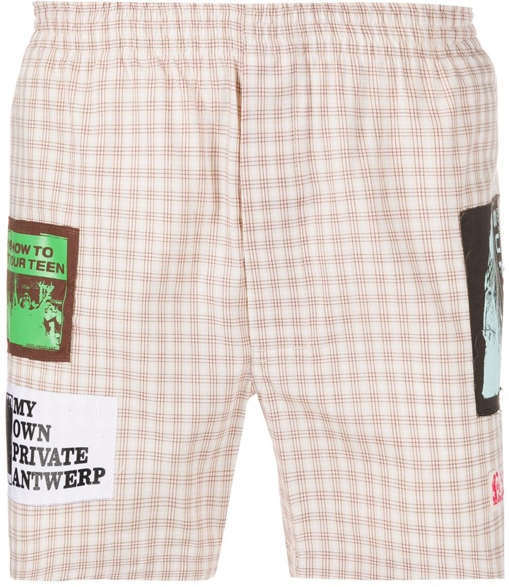 Rihanna stepped out for the night in a $341.74 Conner Ives reconstructed Harley Davidson halterneck top. The bandana style top is made of a cotton-blend voile complete with a self-tie detail on the back and graphic from the remnants of Harley Davidson Motorcycle tee. She pairs the edgy top with a pair of $1,850 Balenciaga slashed loose fit pants, sagged to expose her Raf Simons Patch Detail Checked Boxer Shorts (sold out). The “Work” artist also wore the same Raf Simons boxer shorts with a distressed Balenciaga stripe blue shirt during a recent outing with A$AP Rocky.