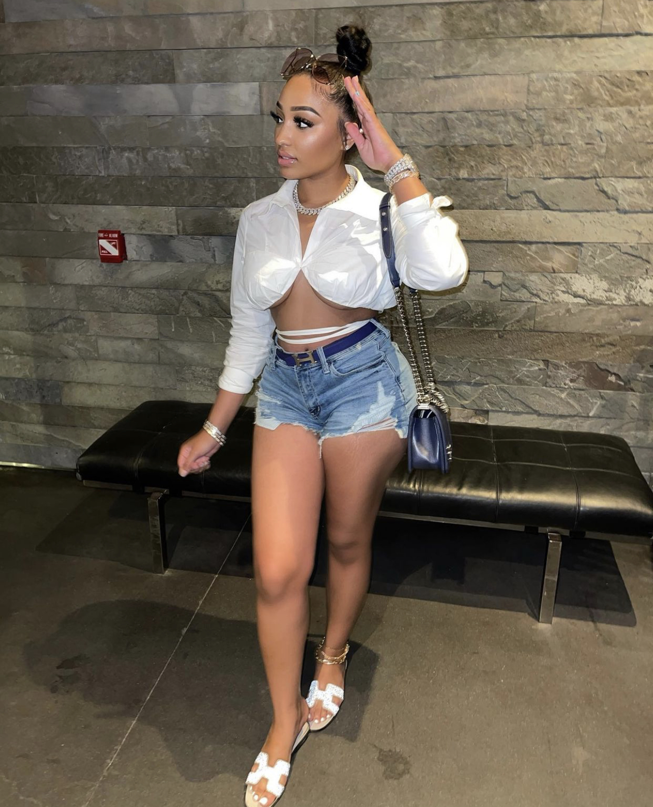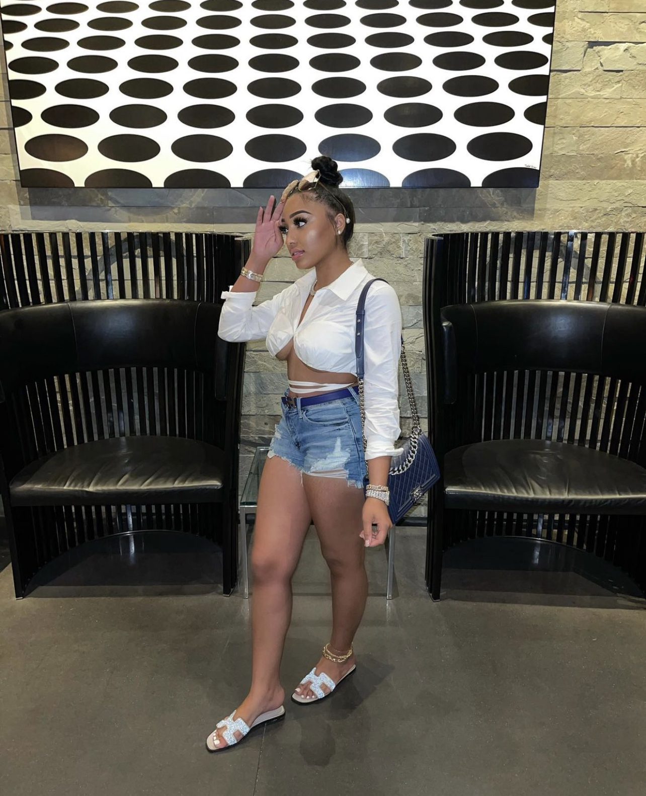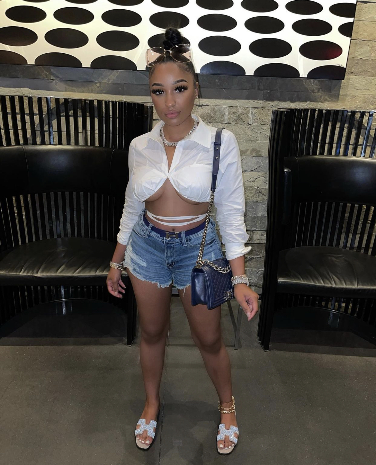 Ella Rodriguez stepped out for a night on the town wearing a casual yet chic look. The beauty entrepreneur was outfitted in a Fashion Nova wraparound crop shirt paired with denim shorts and white sandals.