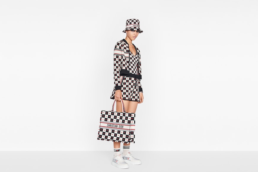 JT opted for a black, red, and white look which gave us DC Comics’s “Harley Quinn” vibes. She wore a $2,150 Dioramour bodysuit (sold out). Part of the Dioramour collection, the bodysuit appears in the capsule’s standout black, white, and red color palette complete with the D-chess heart motif. Not to mention, it adds a little Dior heritage with its signature ‘CHRISTIAN DIOR’ straps. She also rocks the $2,280 Micro Caro Bag form the Dioramour colleciton. Jt then finishes the look with a pair of $1,495 Christian Louboutin “Kate” Calfskin Red Sole Stiletto Knee Boots.