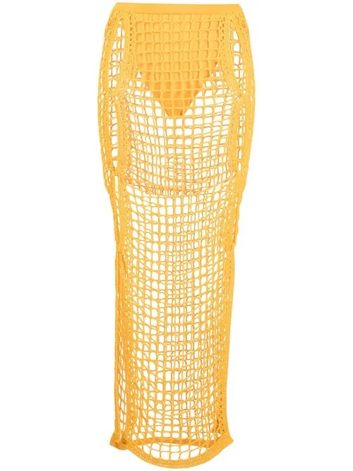 Three celebrities, one skirt! Normani, Draya Michele and Dess Dior were spotted in Dion Lee’s yellow crochet skirt from the Spring/Summer 2021 collection.
