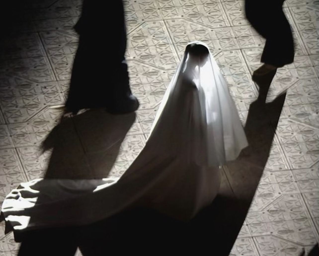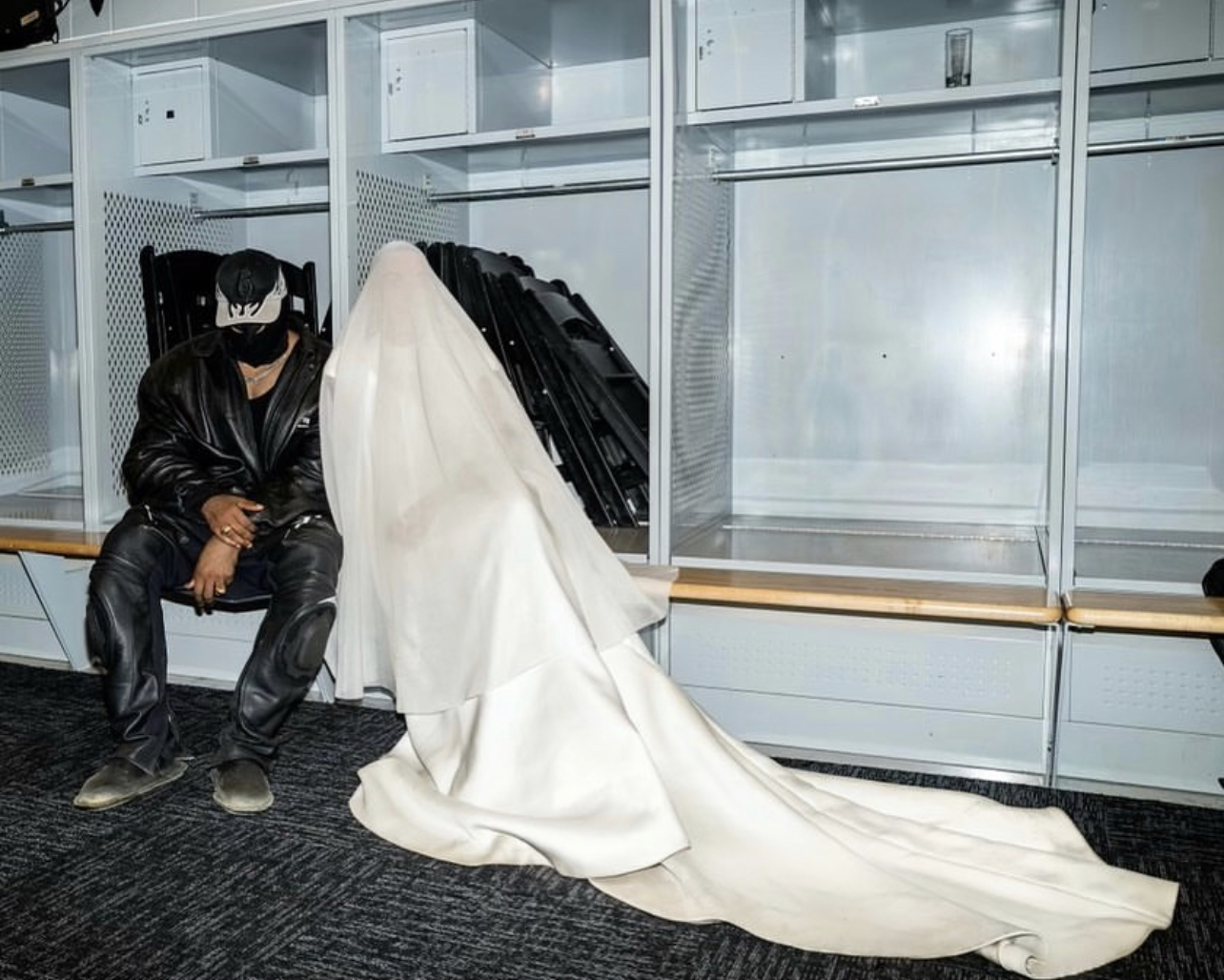 For the “wedding scene” of the DONDA listening event, Kim Kardashian wore Balenciaga Fall 2021 Haute Couture “Look 63”. The estranged couple seemed to be recreating their wedding day in Florence, Italy where the two wore Givenchy, under Riccardo Tisci, ensembles.