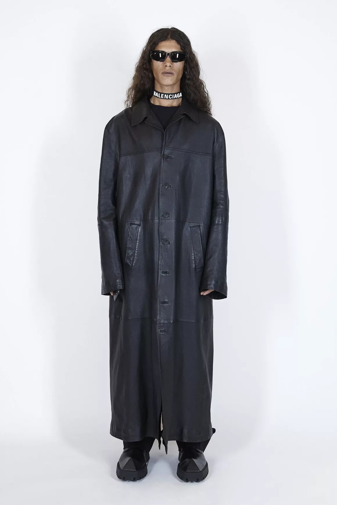 Kim Kardashian rocked another Balenciaga look while backstage with Saint West and Kanye West. The entrepreneur was outfitted in the brand’s Spring 2021 leather trench coat (unavailable), $2,250 Knife Shark leather over-the-knee boots, and BB0041S sunglasses.