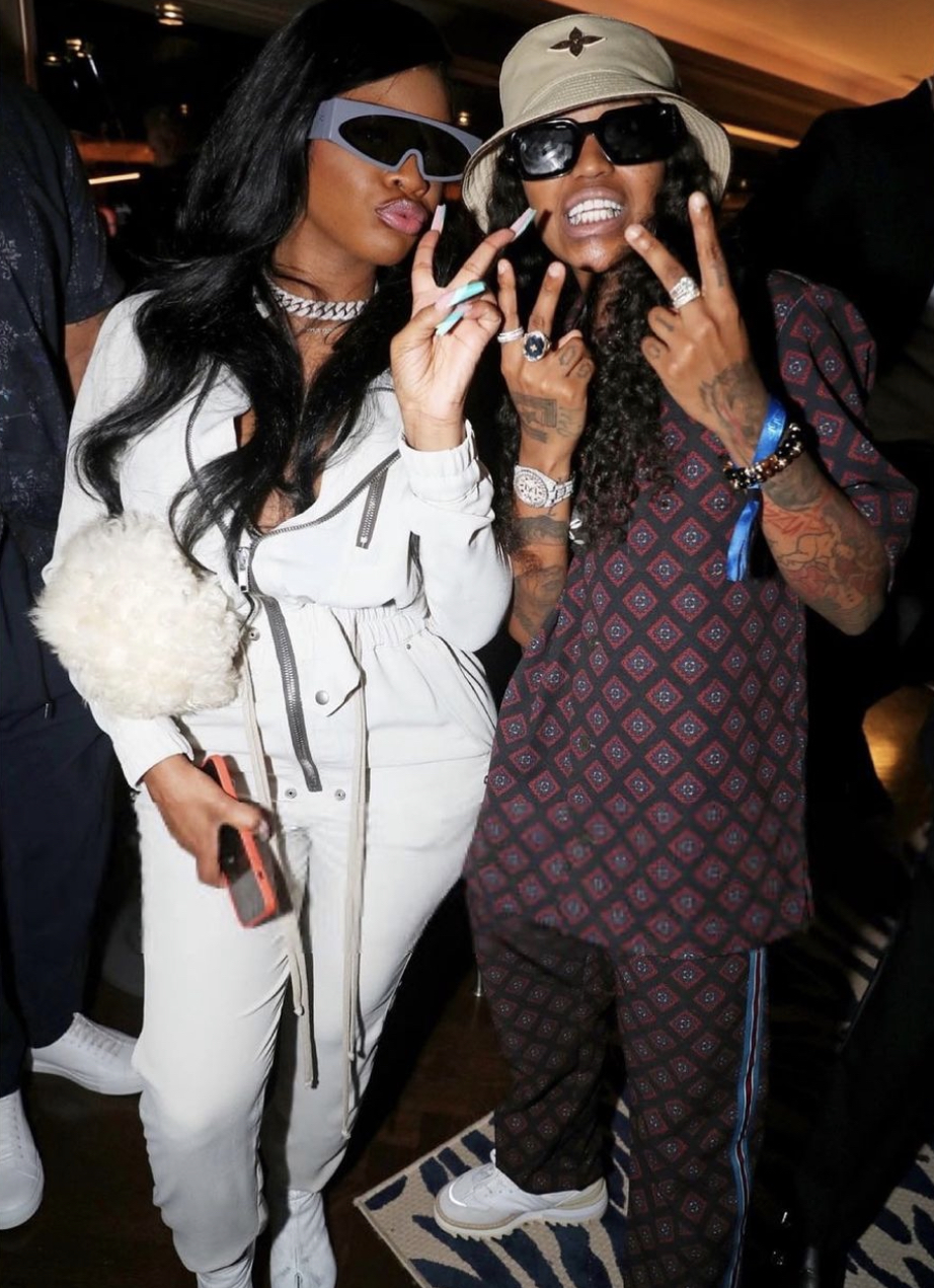 JT posed with Kaash Paige, in a $735 Dries Van Noten shirt and $795 pants and New Balance shoes, wearing a $1,176 Rick Owens jumpsuit and “Gene” sunglasses.