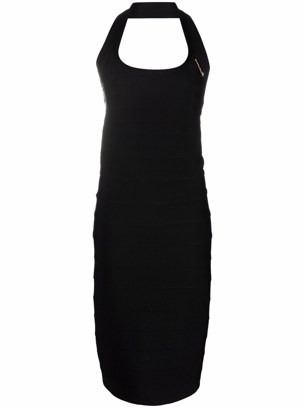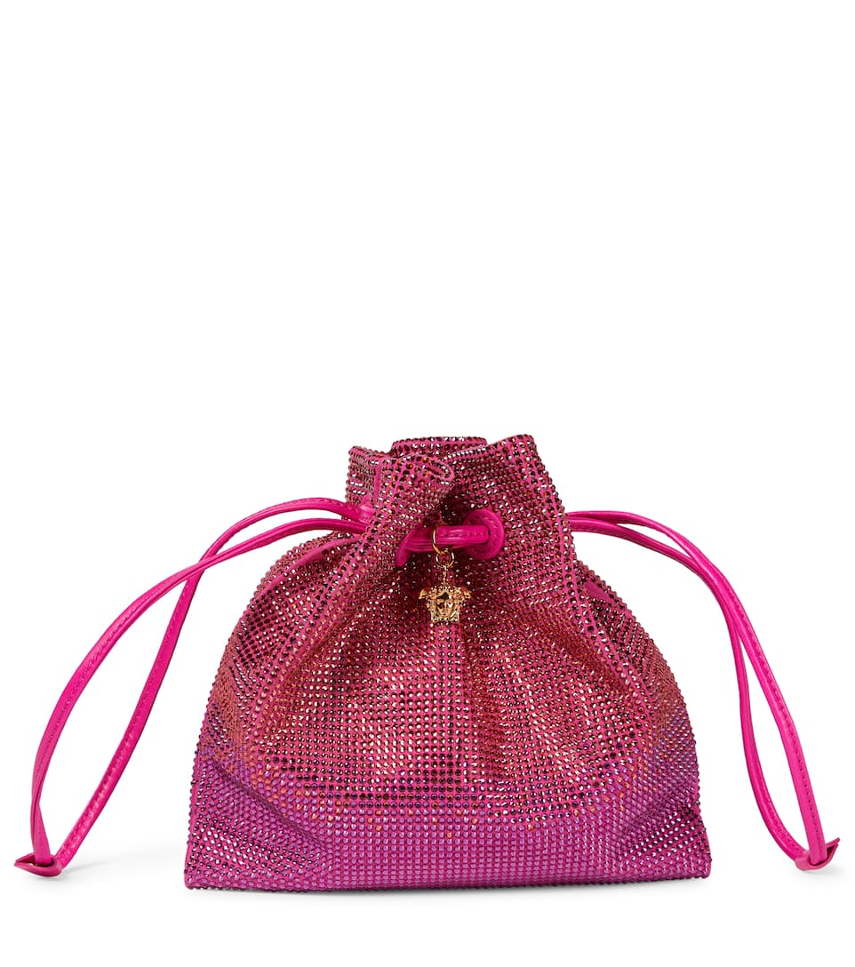 Beyoncé gave us a real life “Barbie” moment wearing a full Versace look including the brand’s $3,495 black safety pin dress, $1,295 satin platform shoes, and $1,410 drawstring purse (sold out). She accessorized the Versace ensemble with Lorraine Schwartz 20 Carat Colombian Emerald & Black Silk Cord Necklacesand 50 Carat Emerald and Sapphire Earrings. Adding to her look’s pink vibes, she sported a The 2nd Skin Co. fuchsia organza trench coat. Her look was styled by KJ Moody.