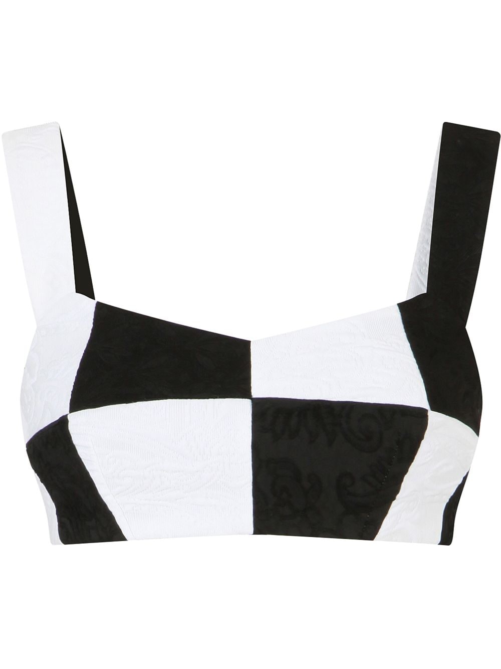 Chance Combs wore Dolce and Gabbana’s $925 Damier jacquard-woven top and $995 patchwork jacquard mini skirt. She draped a white and black blazer over her shoulders. For a pop of color, she paired the look with the brand’s $795 Bianca DG Logo Patent Flat Sandals. She finished the look with hoop earrings and a $695 Dolce and Gabbana “DG Girls” mini bag.