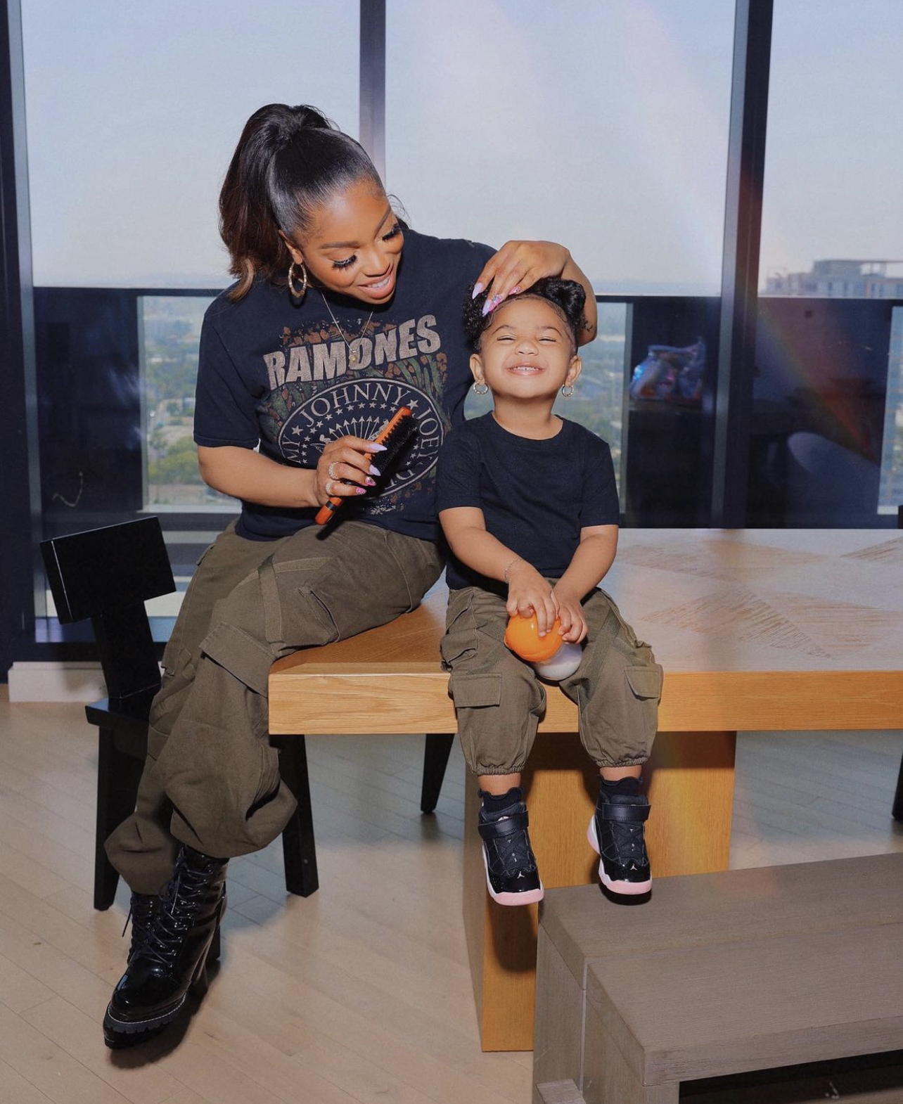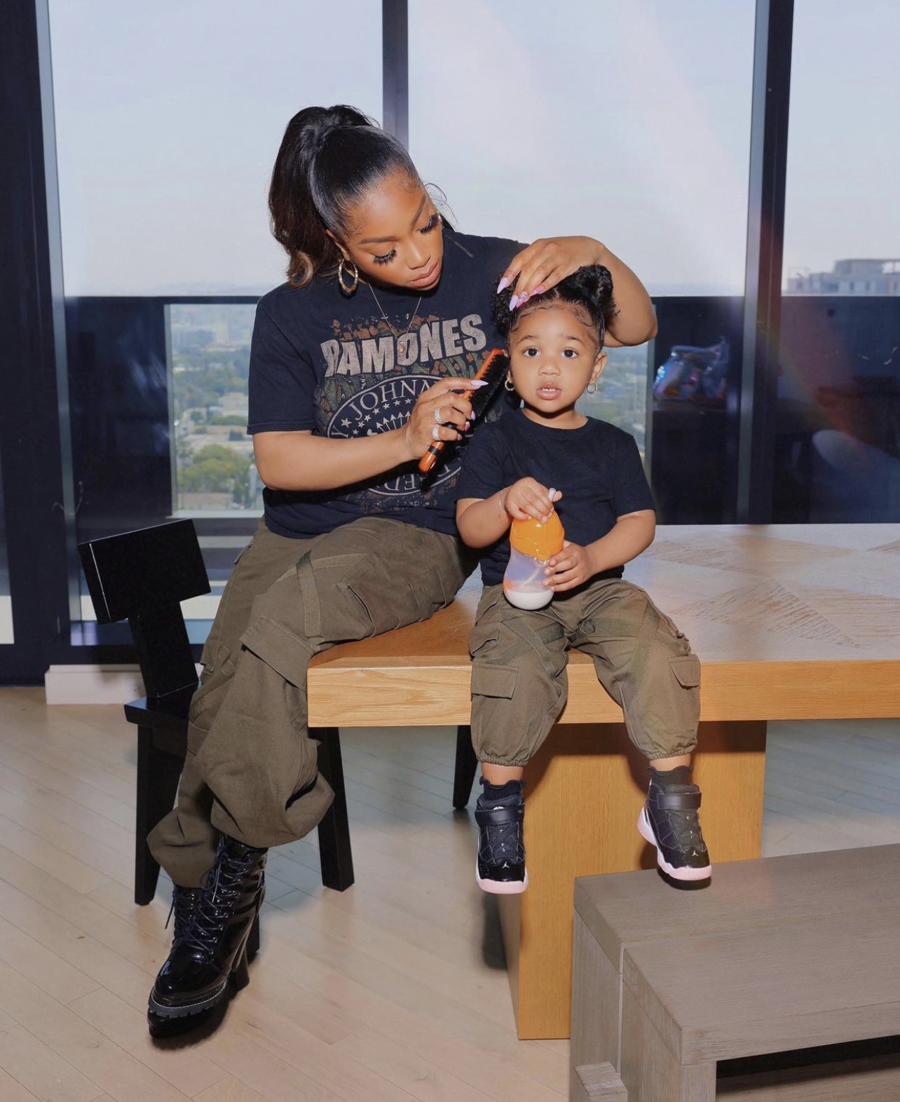 Brooke Valentine and her daughter Chí Summer are always supplying stylish mother-daughter looks! For their latest matching looks, the two were outfitted in black t-shirts and Fashion Nova olive green cargo pants.