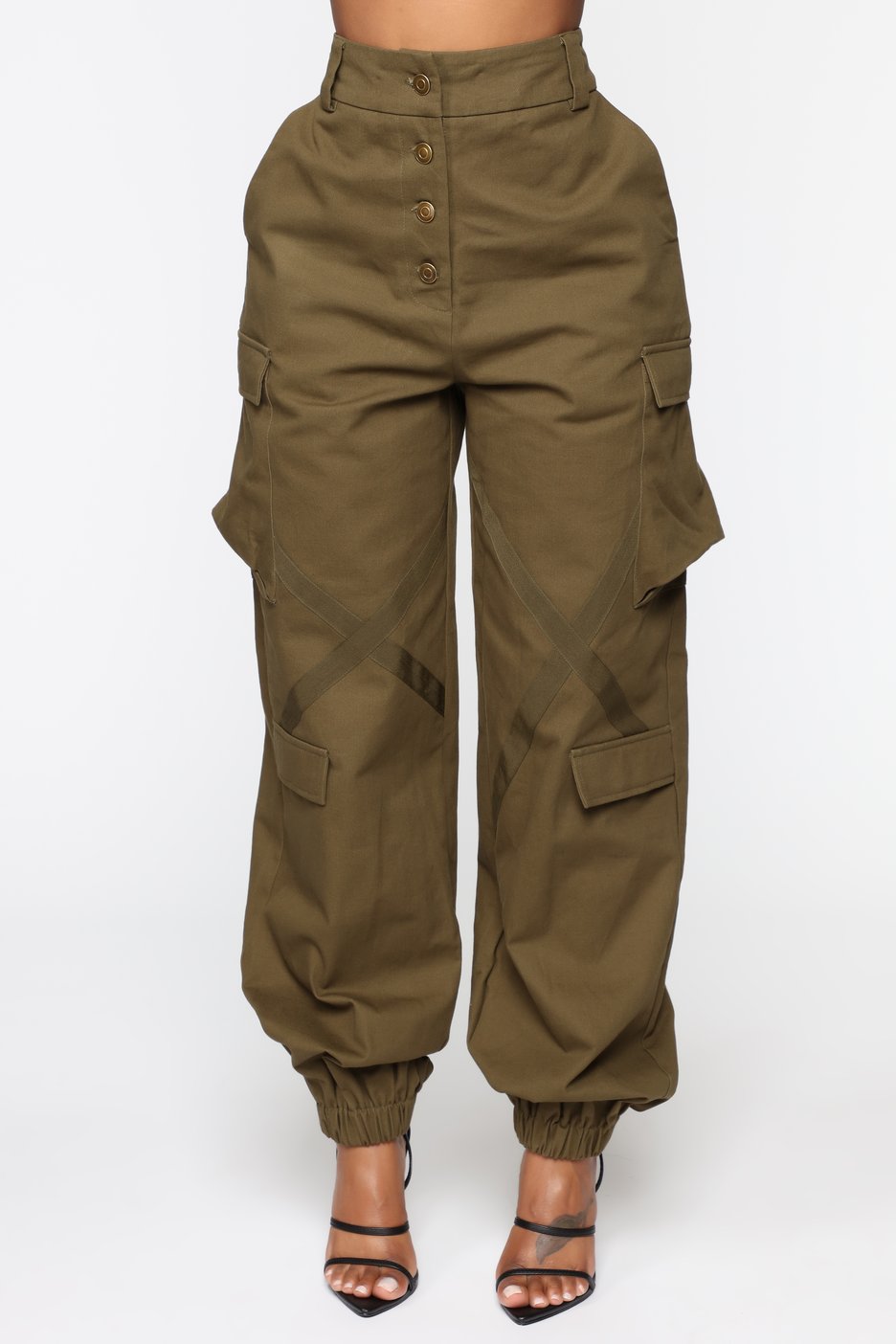 Brooke Valentine wore Fashion Nova’s $44.99 Amelia Oversized Cargo Pants. Appearing olive, the cargo trousers consists of a four-button closure forming a high waist detail, elastic ankle cuffs, and multiple pockets. The cargos come in an oversized fit for an edgy, menswear-style look in addition to offering immense comfort. She finished the look off with a Ramones black t-shirt, combat boots, and hoop earrings.