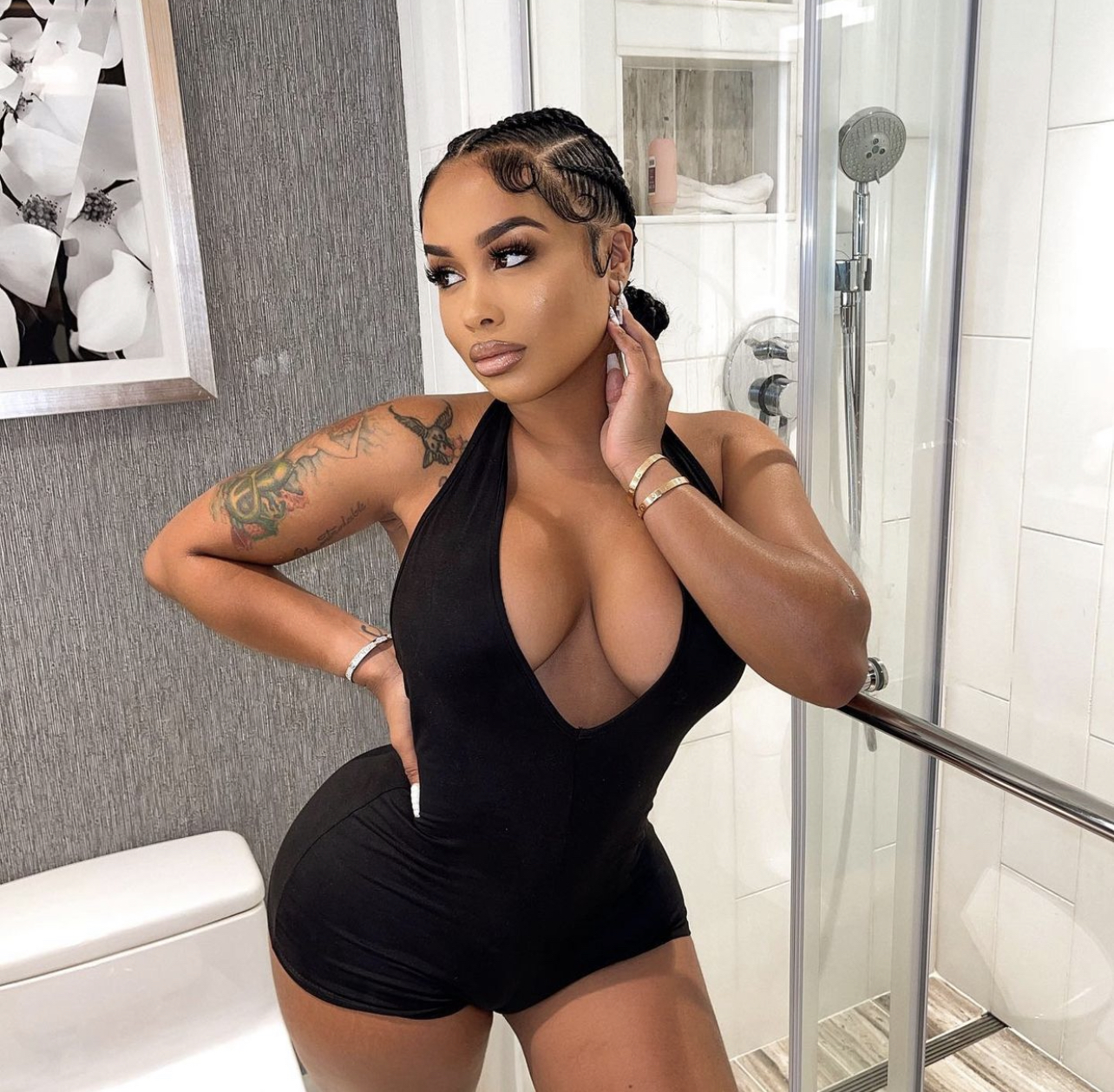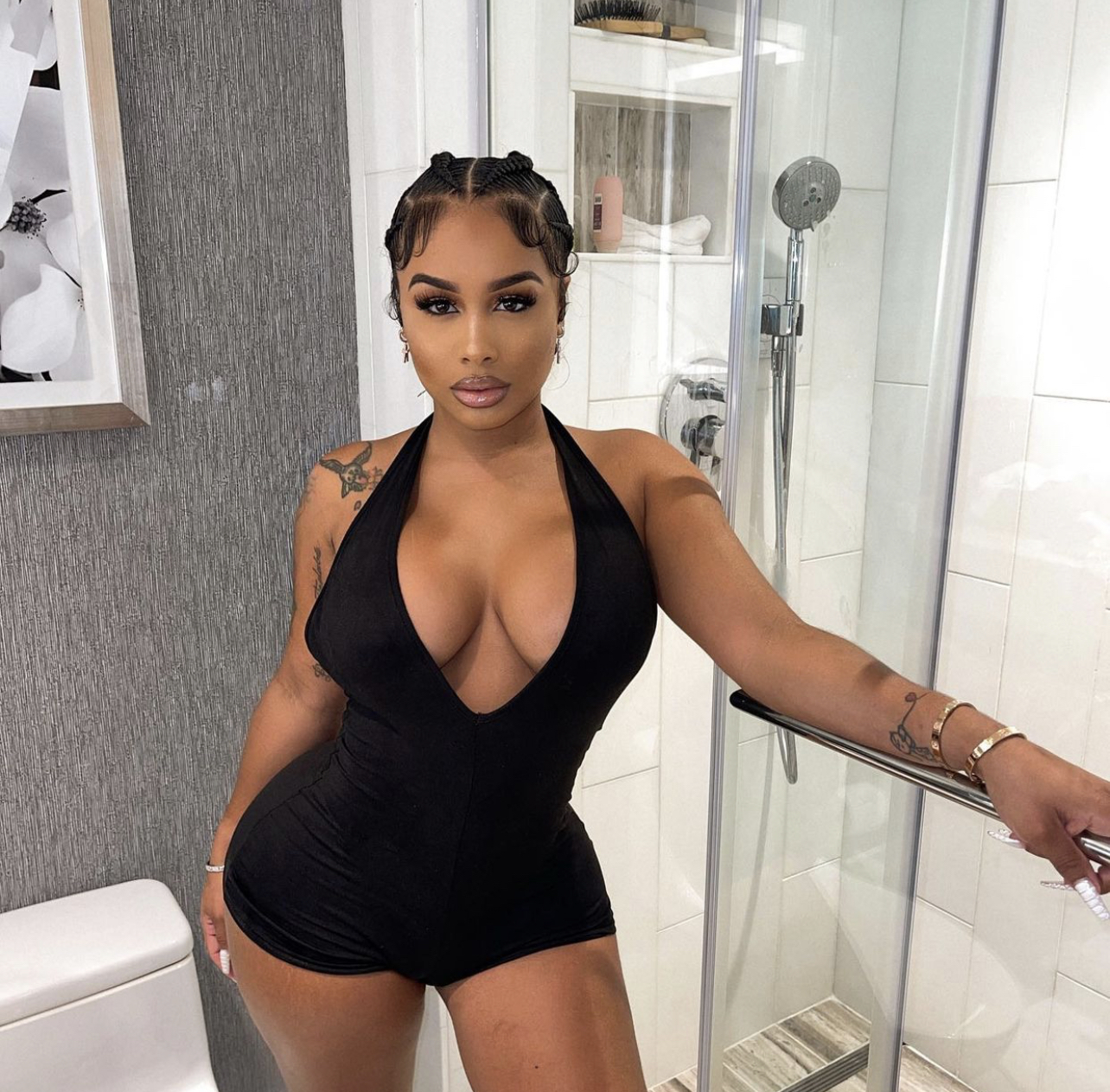 DreamDoll took to Instagram to share her latest look which showed off her curvy physique. The rapper posed in a black halterneck romper from Fashion Nova. Let’s get into her look: