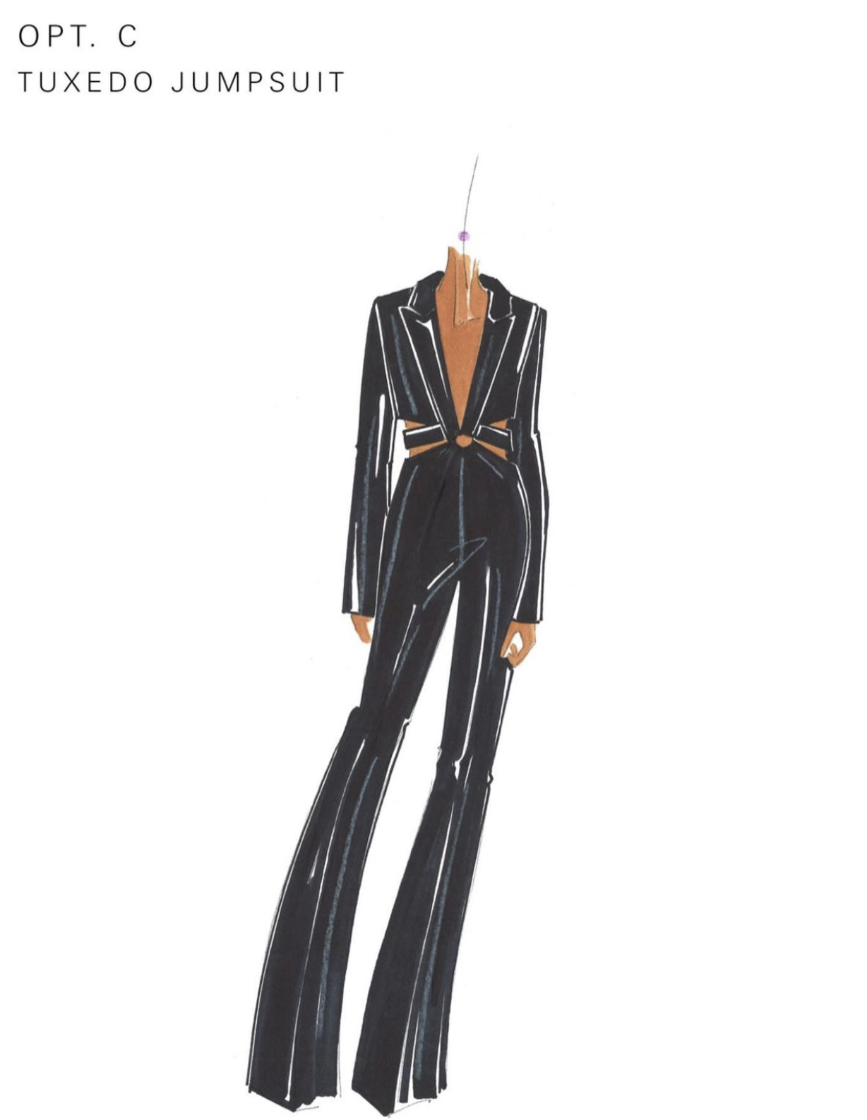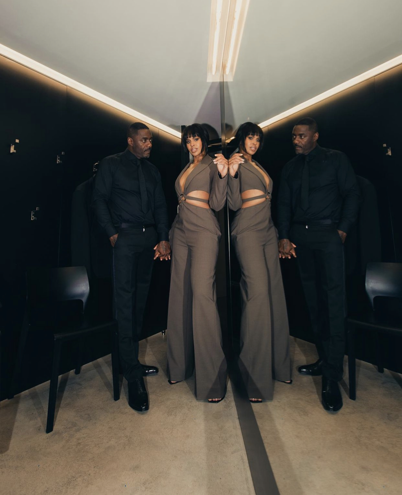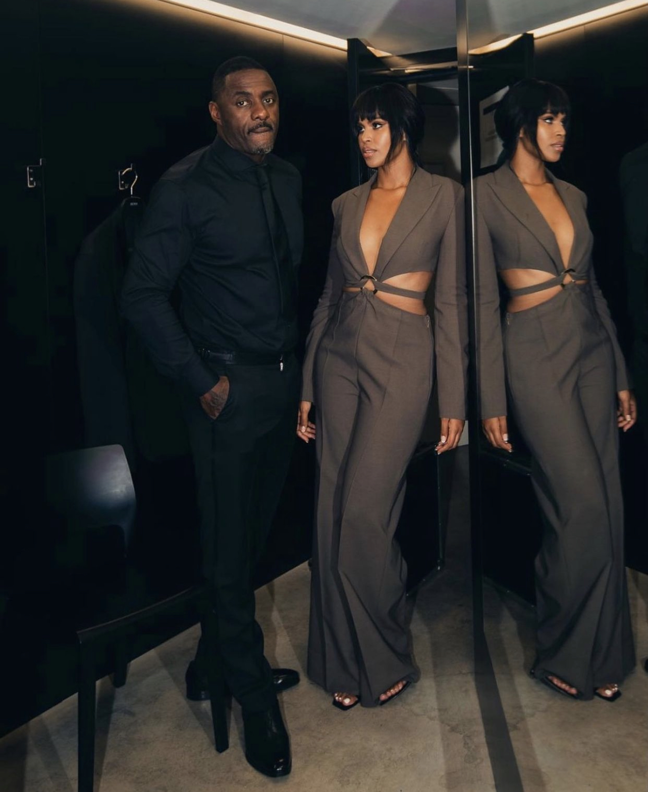 For their second look for the evening, Sabrina and Idris Elba wore tailored ensembles by Boss. Styled by Calvin Opaleye, Sabrina’s look featured a mushroom brown tuxedo jumpsuit with cutouts on both sides connected by an o-ring detail in the middle of the garment. She opted for a pair of black heeled sandals and another pulled back hairstyle to complete her look.