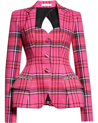 The celebrities are loving Area’s pink plaid blazer! Known as the “Hourglass” blazer, the pink checkered print blazer comes from Area’s Pre-Fall 2021 collection and provides a stylish take on the classic blazer. Appearing in a popping pink plaid print, the outerwear garment features many standout details such as the blazer’s broadened shoulders, a sweetheart neckline, and structured paneling to supply an hourglass figure. Area’s “Hourglass” blazer can be found at Nordstrom for $1,850.