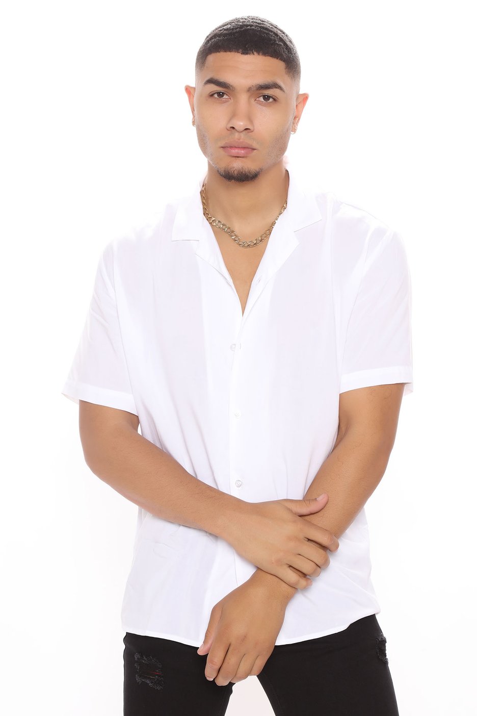 Rome Flynn wore Fashion Nova’s $24.99 Dawson Short Sleeve Woven Top in white. Every man needs that classic short sleeve button shirt in his wardrobe and the Dawson Short Sleeve Woven Top can definitely fulfill that neccesity. The short sleeve top consists of a fold down collar and functioning buttons trailing down the front. Not to mention, the top comes in a slew of color choices like black, green, light blue, red, and yellow.
