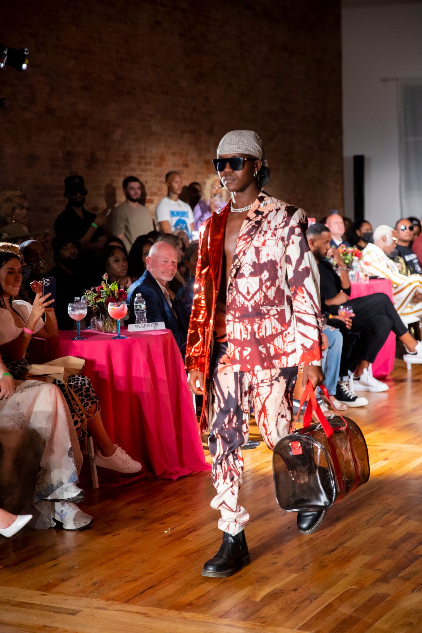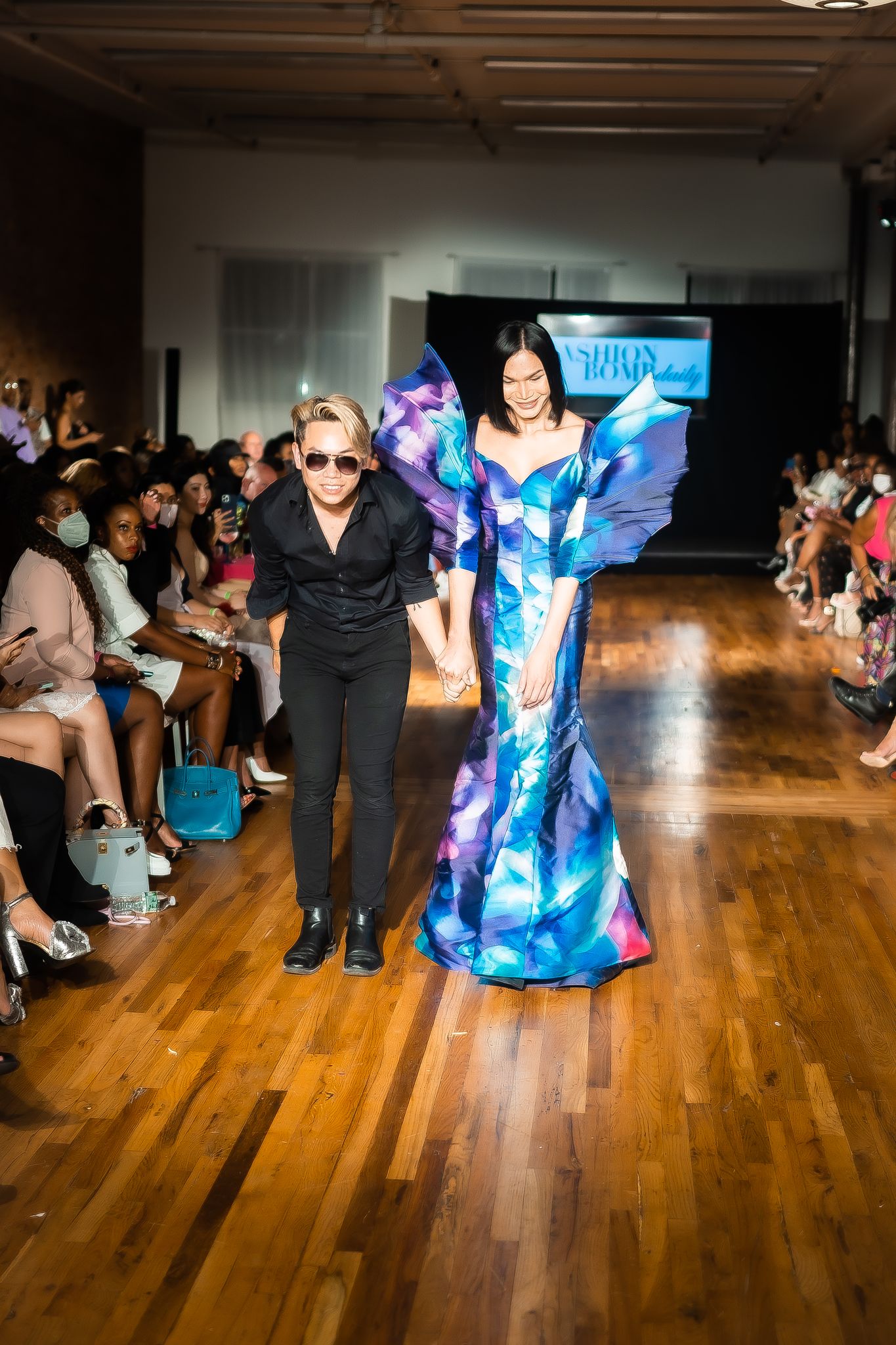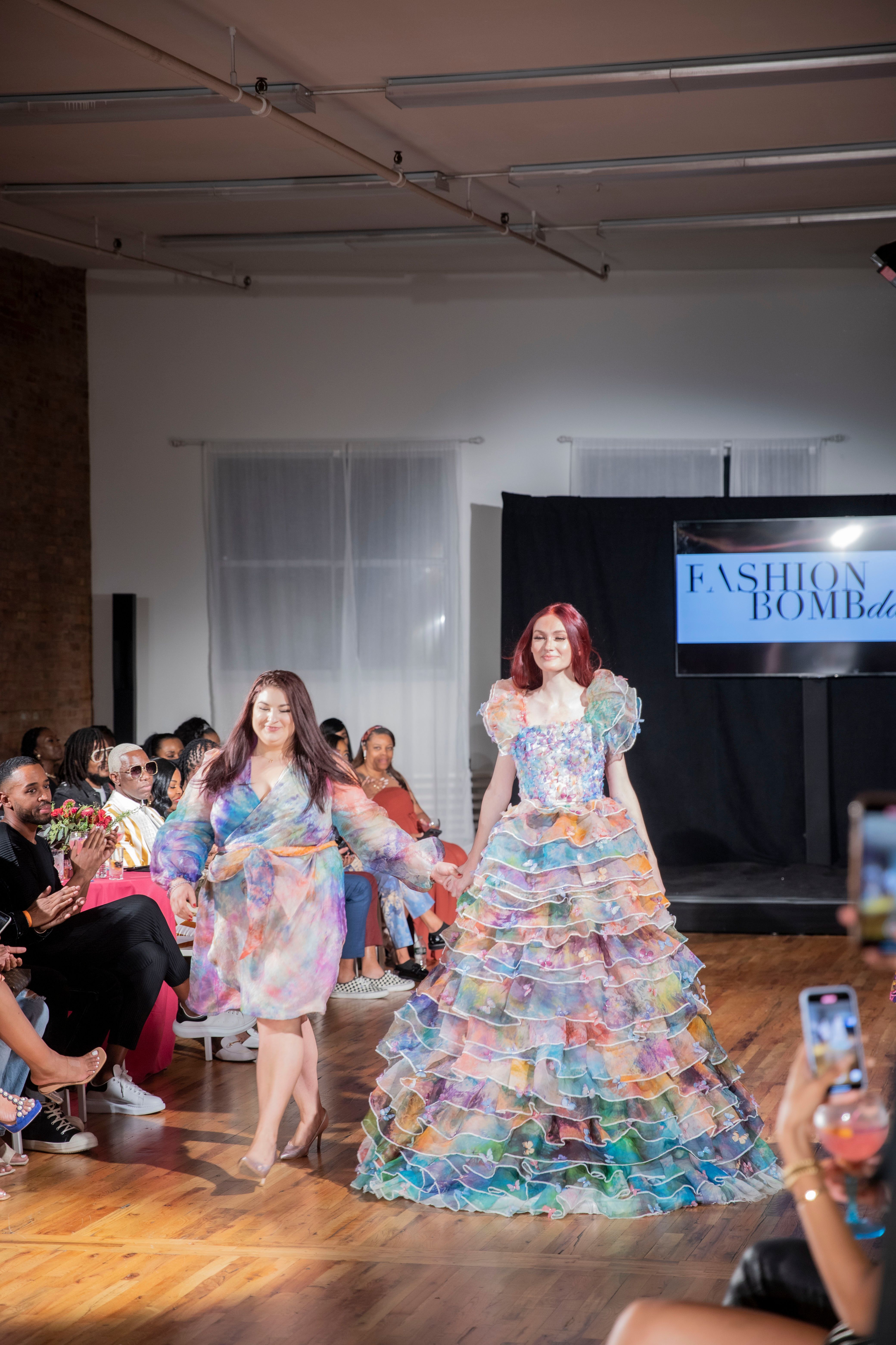Khangle brought lots of color and unique silhouettes to the Bomb Fashion Show runway, closing out with a show-stopping printed winged gown for the final look.