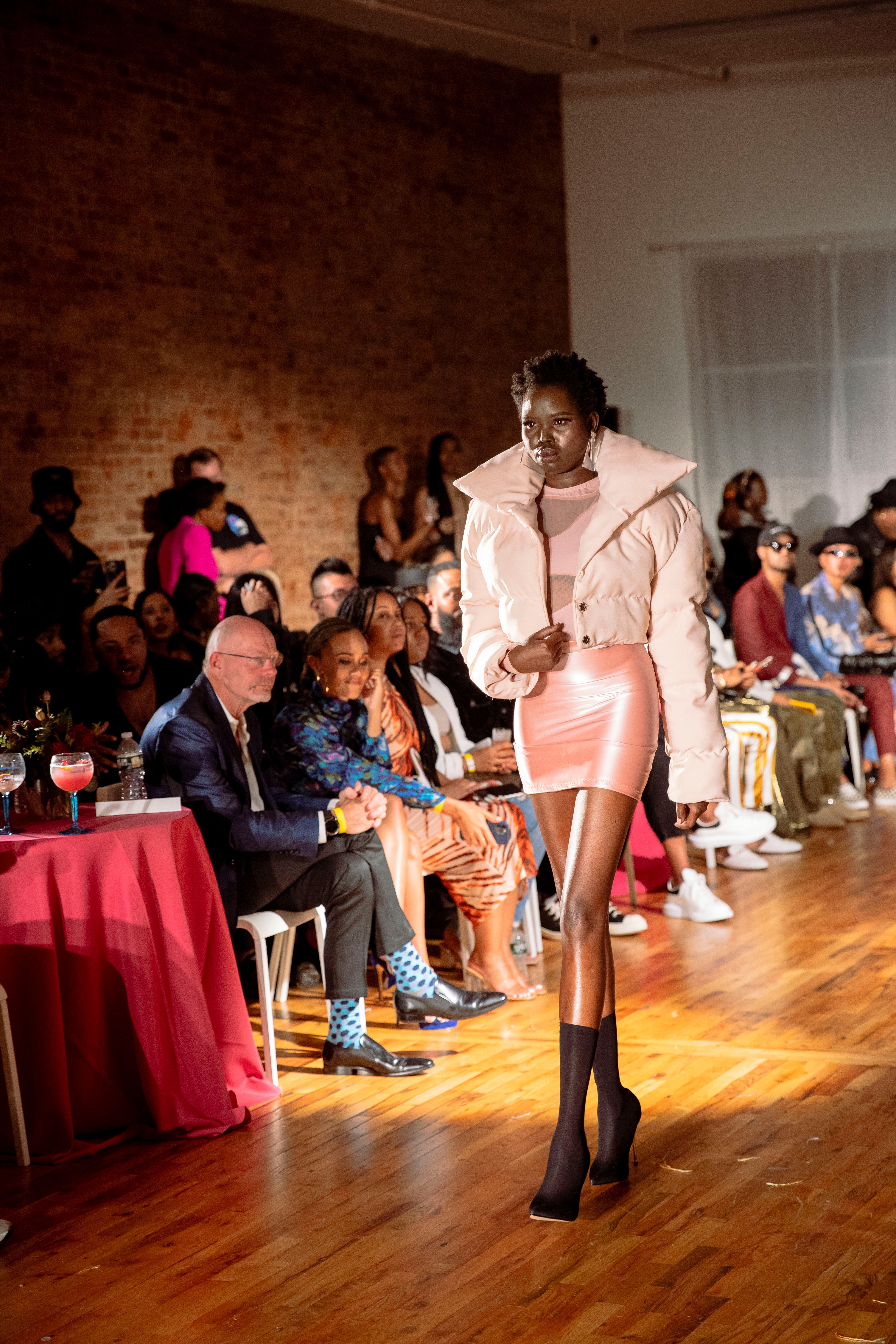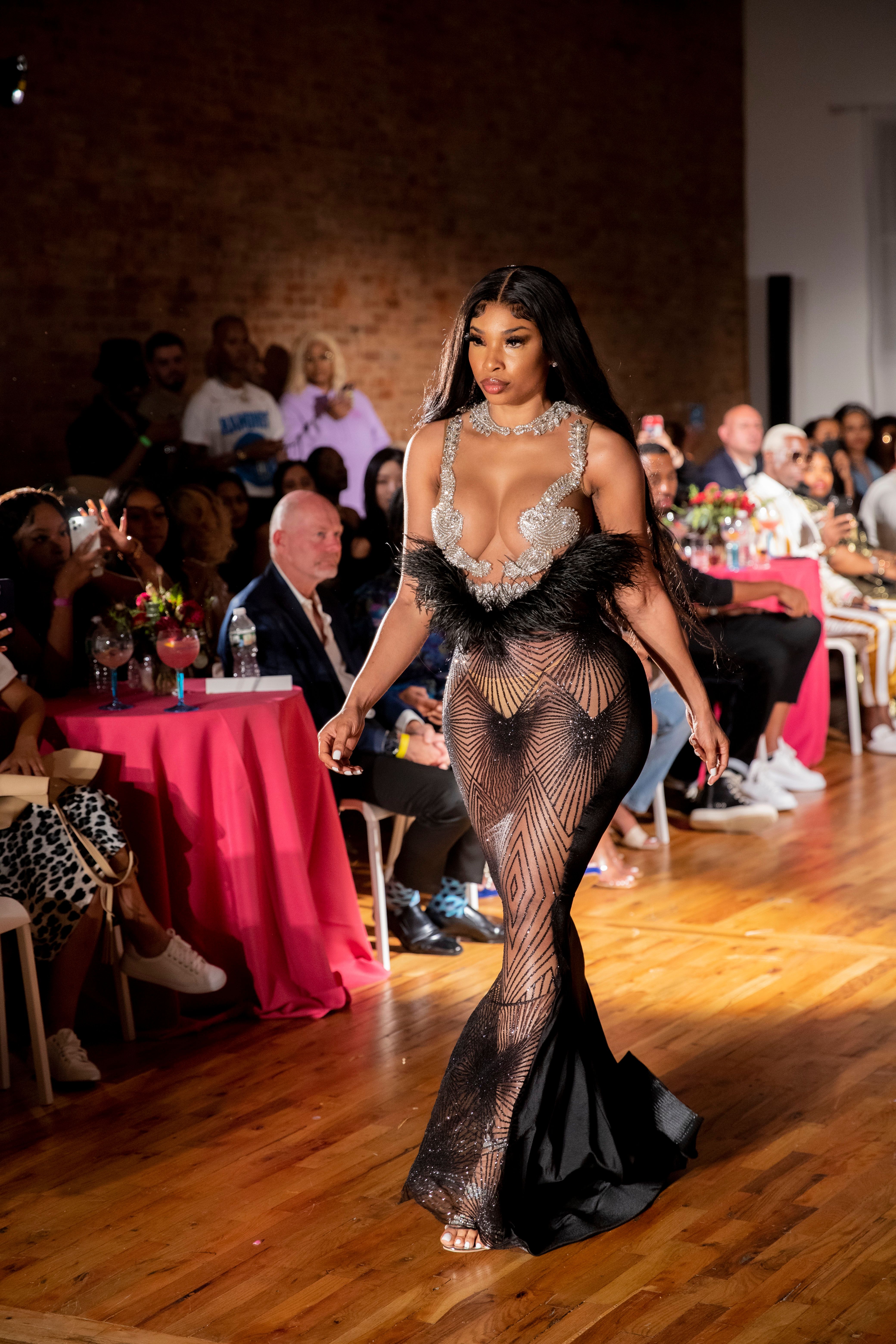 White chairs lined both sides of the runway filled with guests and celebrities who mixed and mingled together to network and grab quick flicks with one another. Gracing the front row of the Bomb Fashion Show, we spied singer Sevyn Streeter, fashion maven Ty Hunter, model and Real Housewives of Atlanta star Cynthia Bailey, actor and singer Rome Flynn, designer Kal Williams, Real Housewives of Potomac star Ashley Boalch Darby and husband Michael Dabry, and Geraldine Ross. Other familiar faces in building included models Mariama Diallo and Broderick Hunter, media personality Jayda Cheaves, rapper DreamDoll, and stylist Kris Shelby.