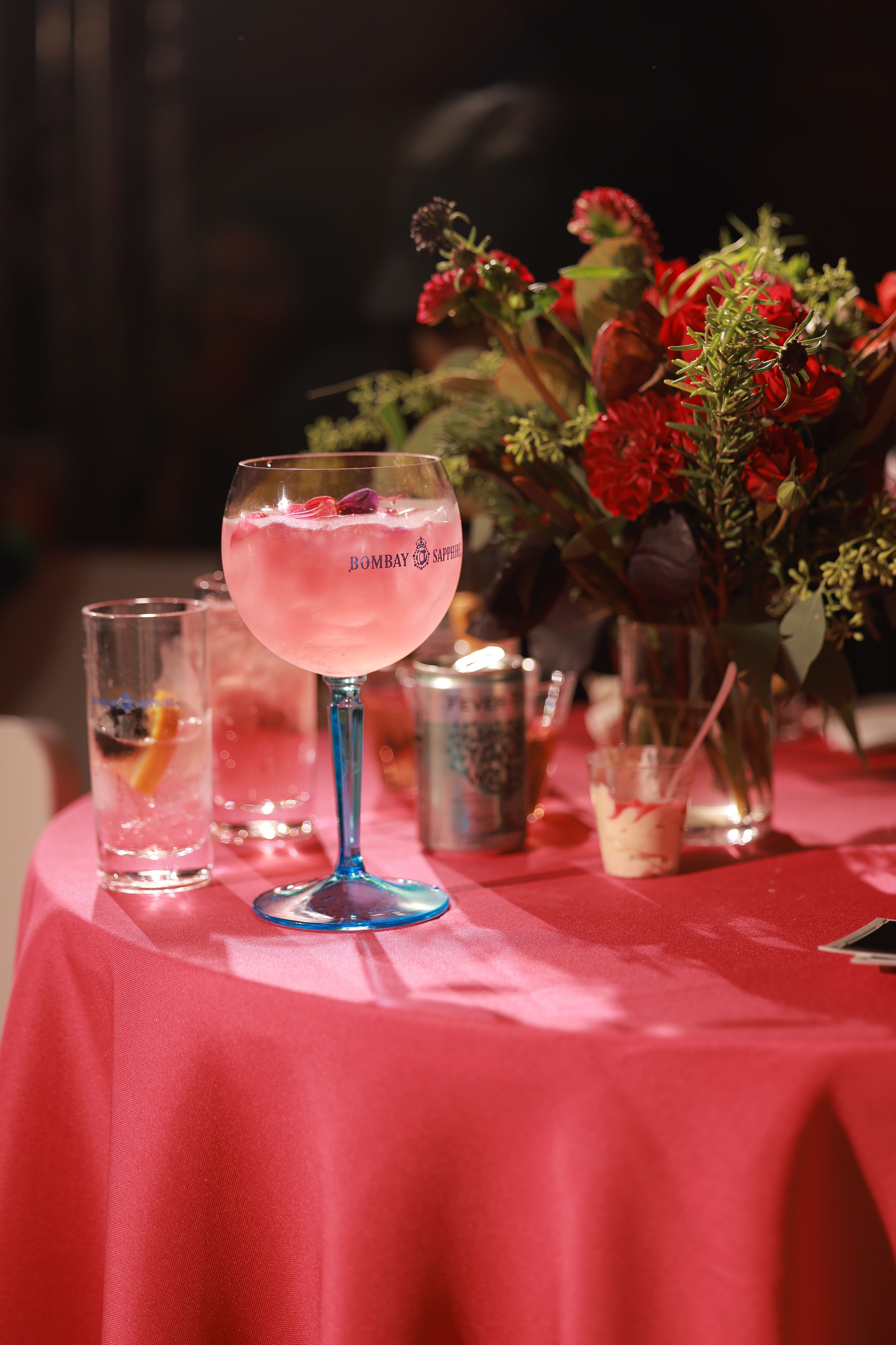 In the next room is where the runway magic happened! Bright lights beamed down on the runway, ready to spotlight the captivating designs that would strut the catwalk. While attendees awaited the fashion festivities, an open bar sponsored by Bombay kept vibrant, summery cocktails flowing throughout the event.