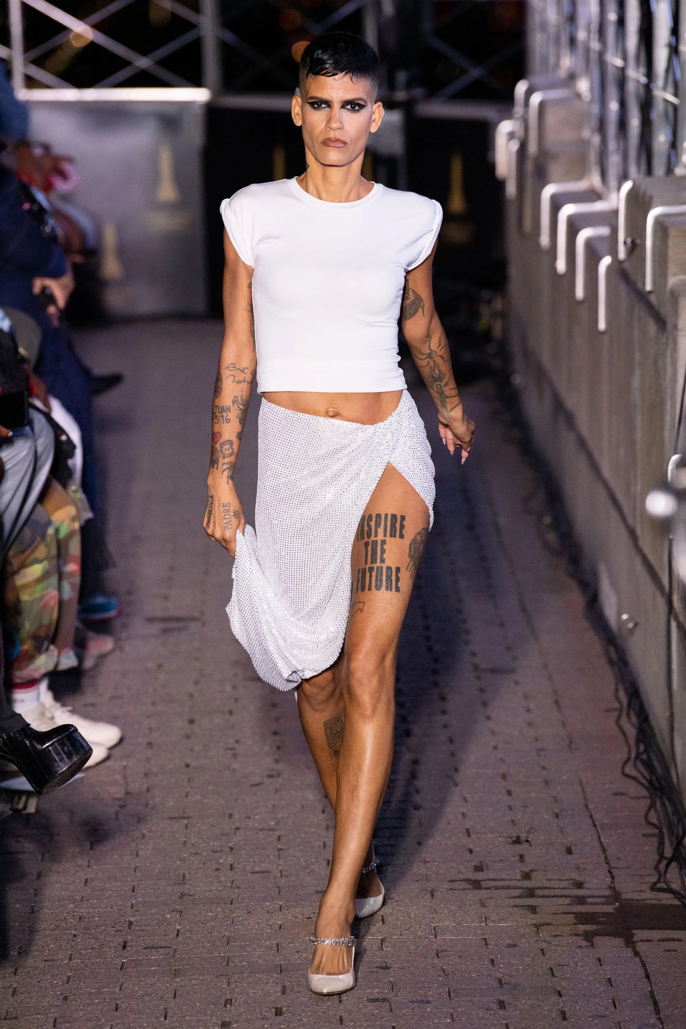 On the scene, celebrities and fashion figures filled the top of the New York skyscraper. Lined with the industry’s “it” girls, City Girls, Ciara, and Lala were spied in the front row. Entrepreneur Kylie Jenner, stylist Law Roach, media personality Bevy Smith, rapper Flo Milli, and more were also seen at the epic LaQuan Smith show.