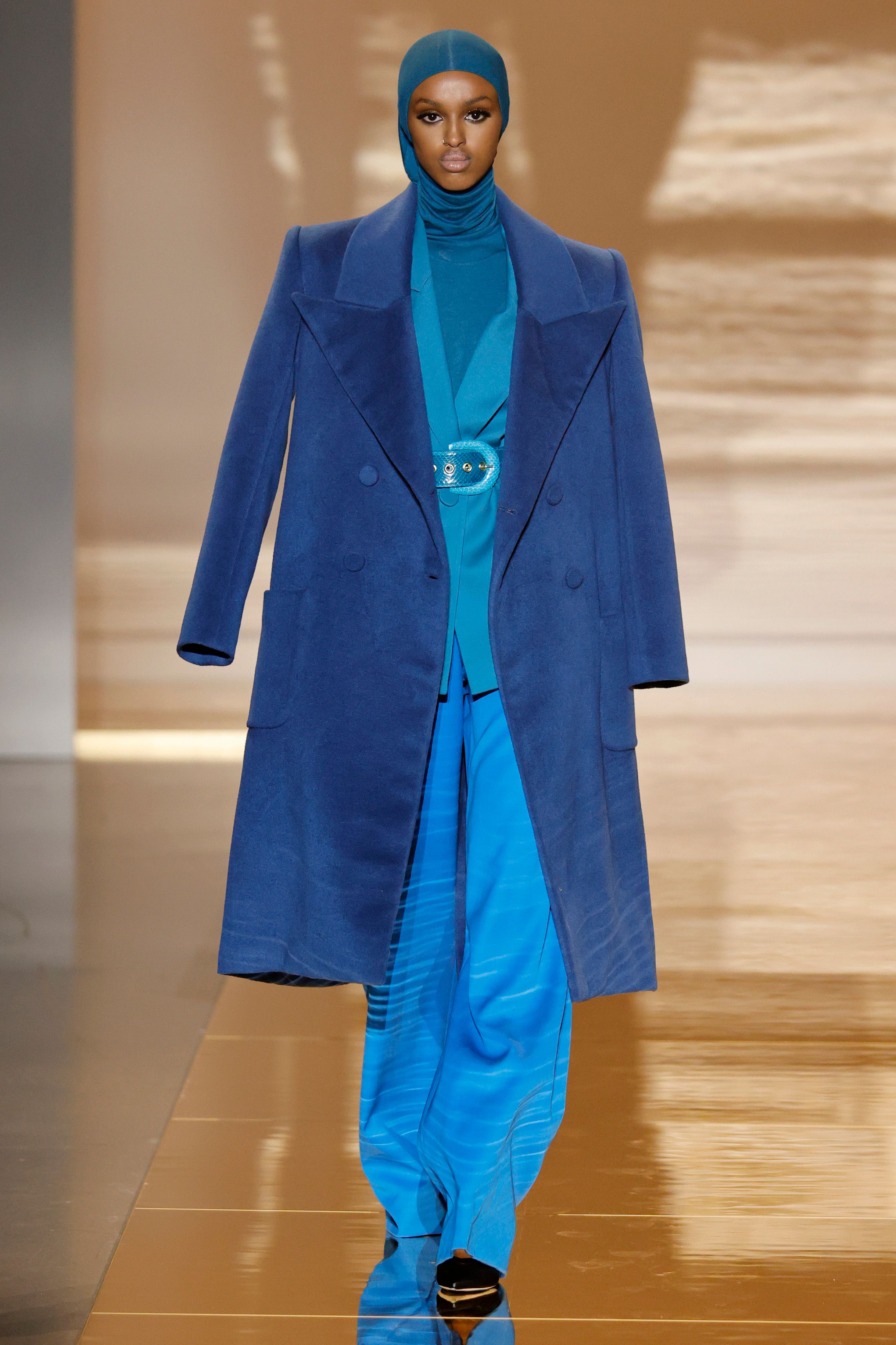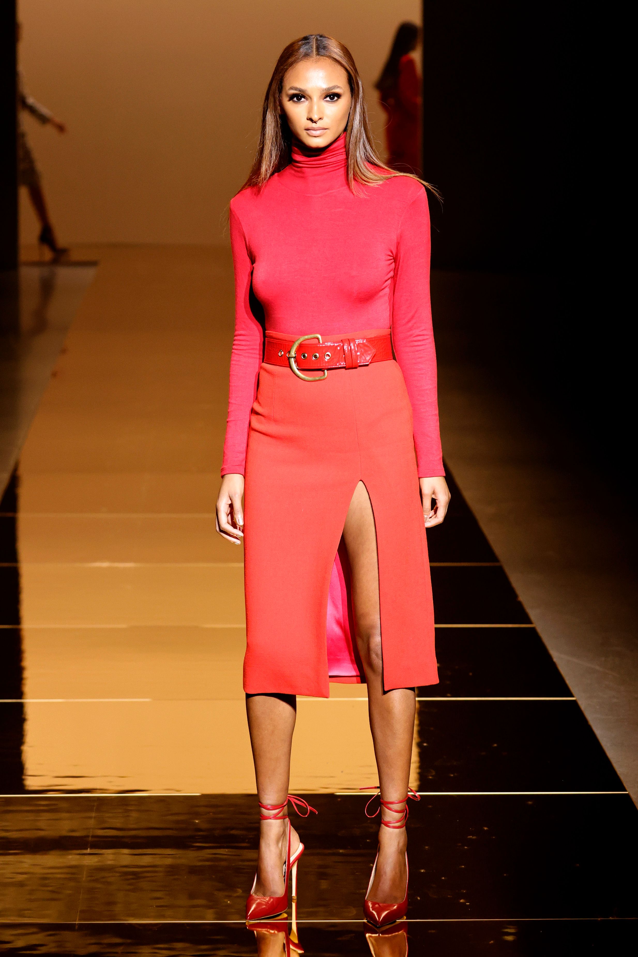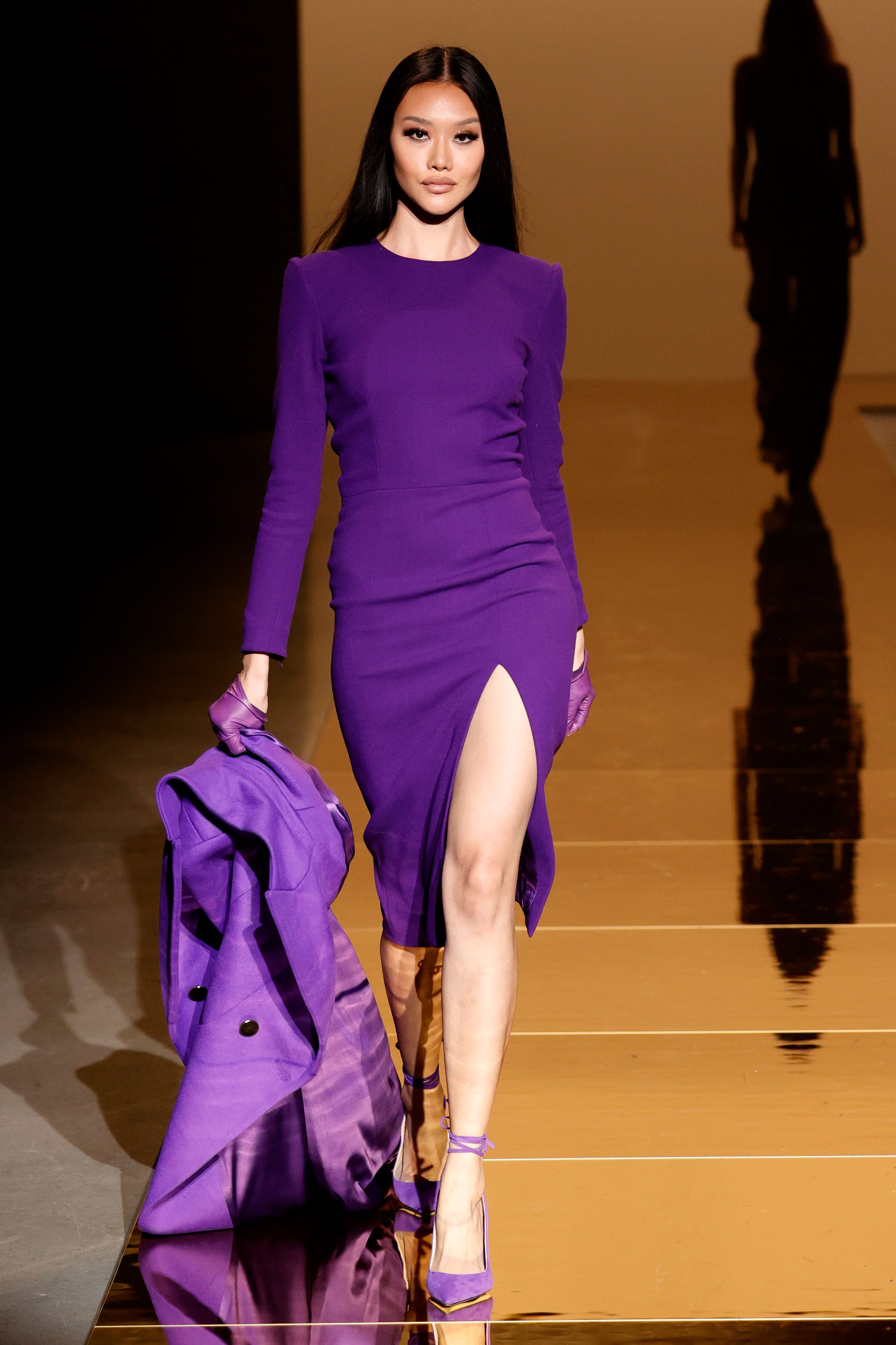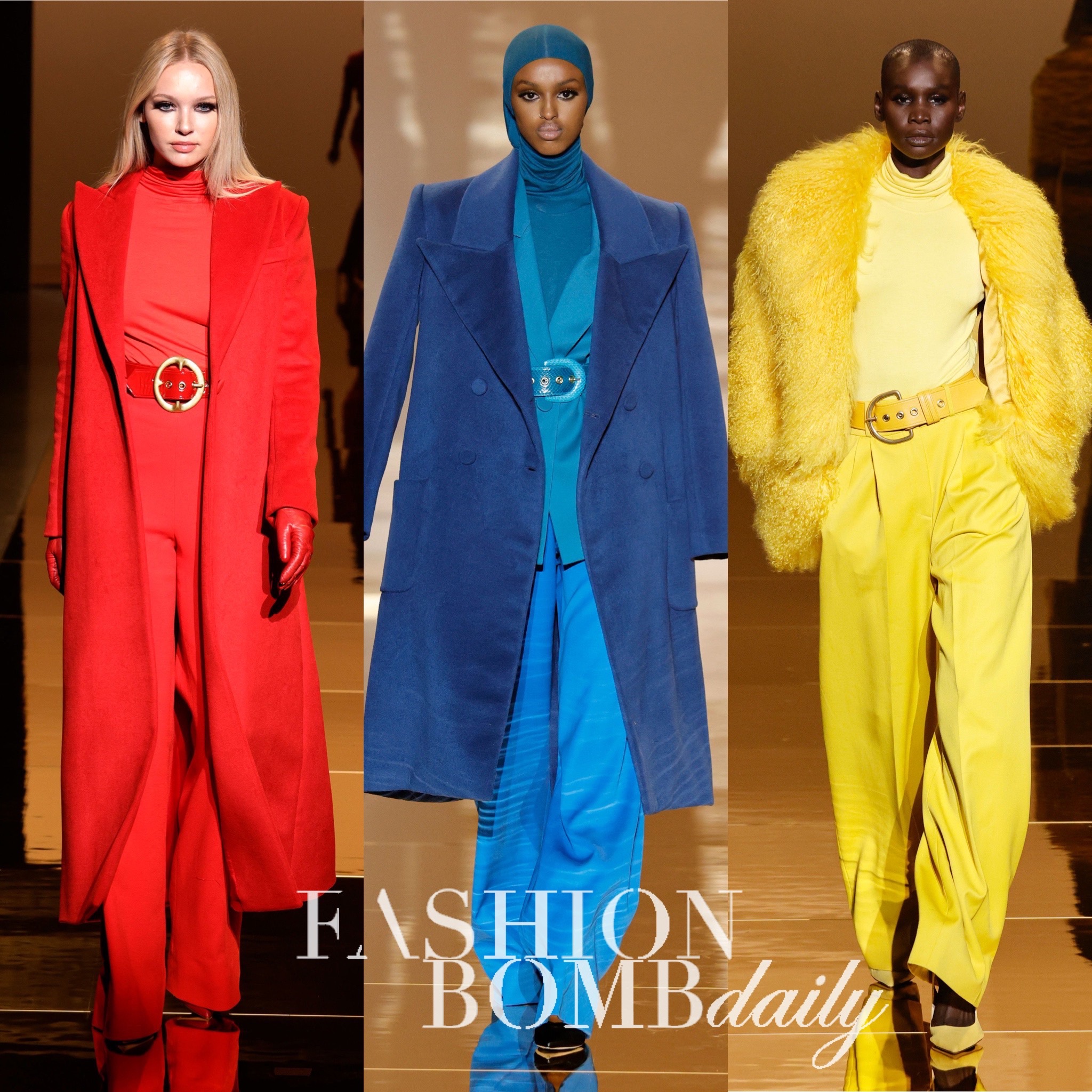 For the brand’s Fall/Winter 2021 collection, designer Sergio Hudson continued with his signature monochromatic aesthetic to capture the glamour we’ve been longing for. Looks presented themselves on the runway following specific and evident color schemes of red, purple, blue, yellow, black, and white along with a print-focused set of ensembles. We even spy a red version of Michelle Obama’s now-famous 2021 Inauguration Day outfit as designed by Sergio Hudson!