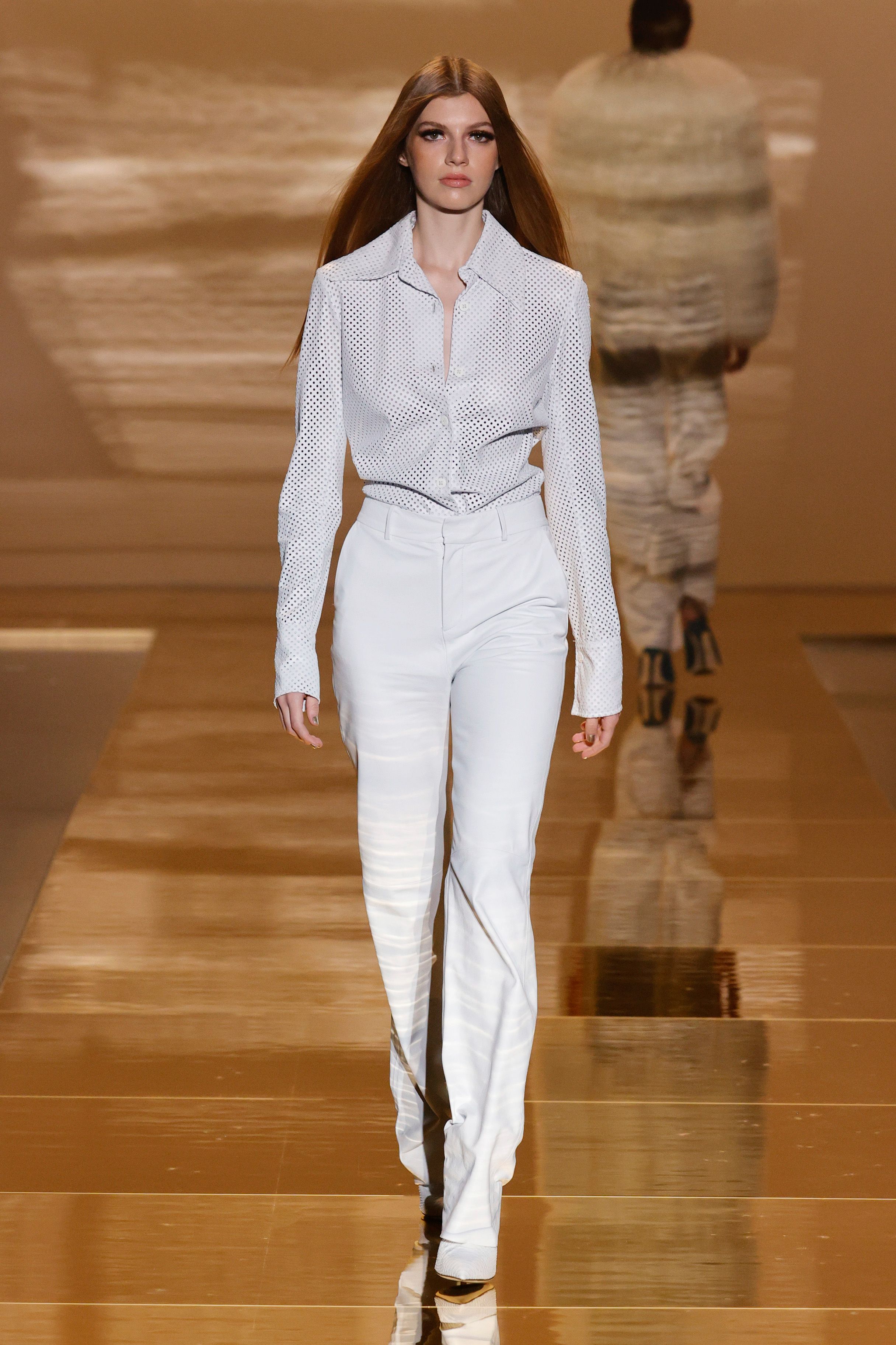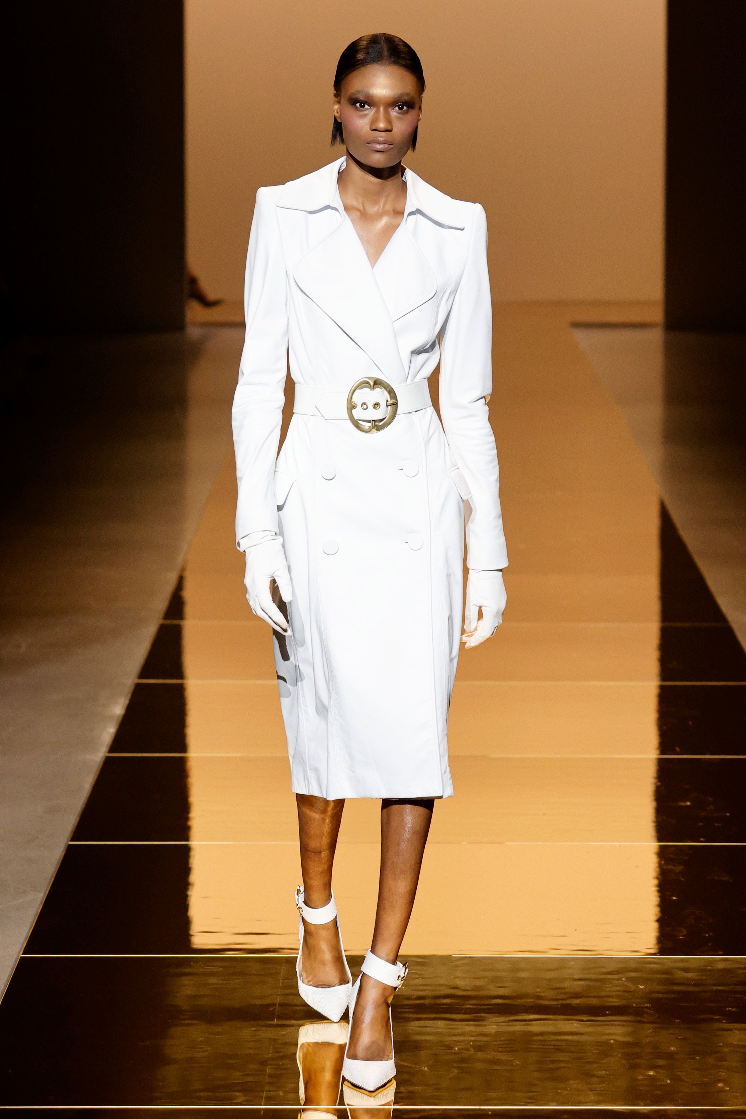 In fact, the designer even referenced an image of the late actress Diahann Carroll where she wears a white look featuring a turtleneck sweater, trousers, and slingback pumps while lounging on a sofa. Taking cues from the actress’s noteworthy style, the collection’s white looks embody the essence of Carroll and timeless American fashion.