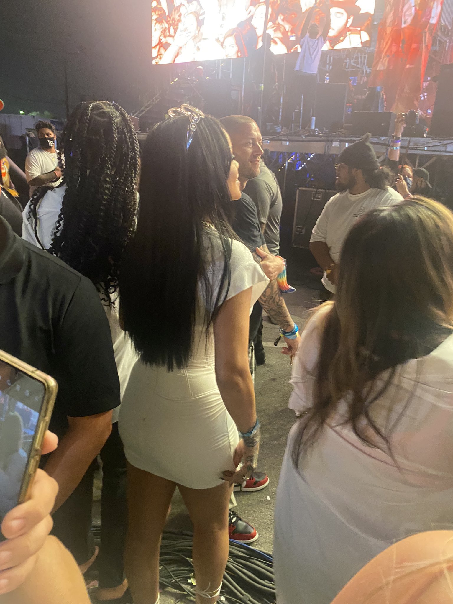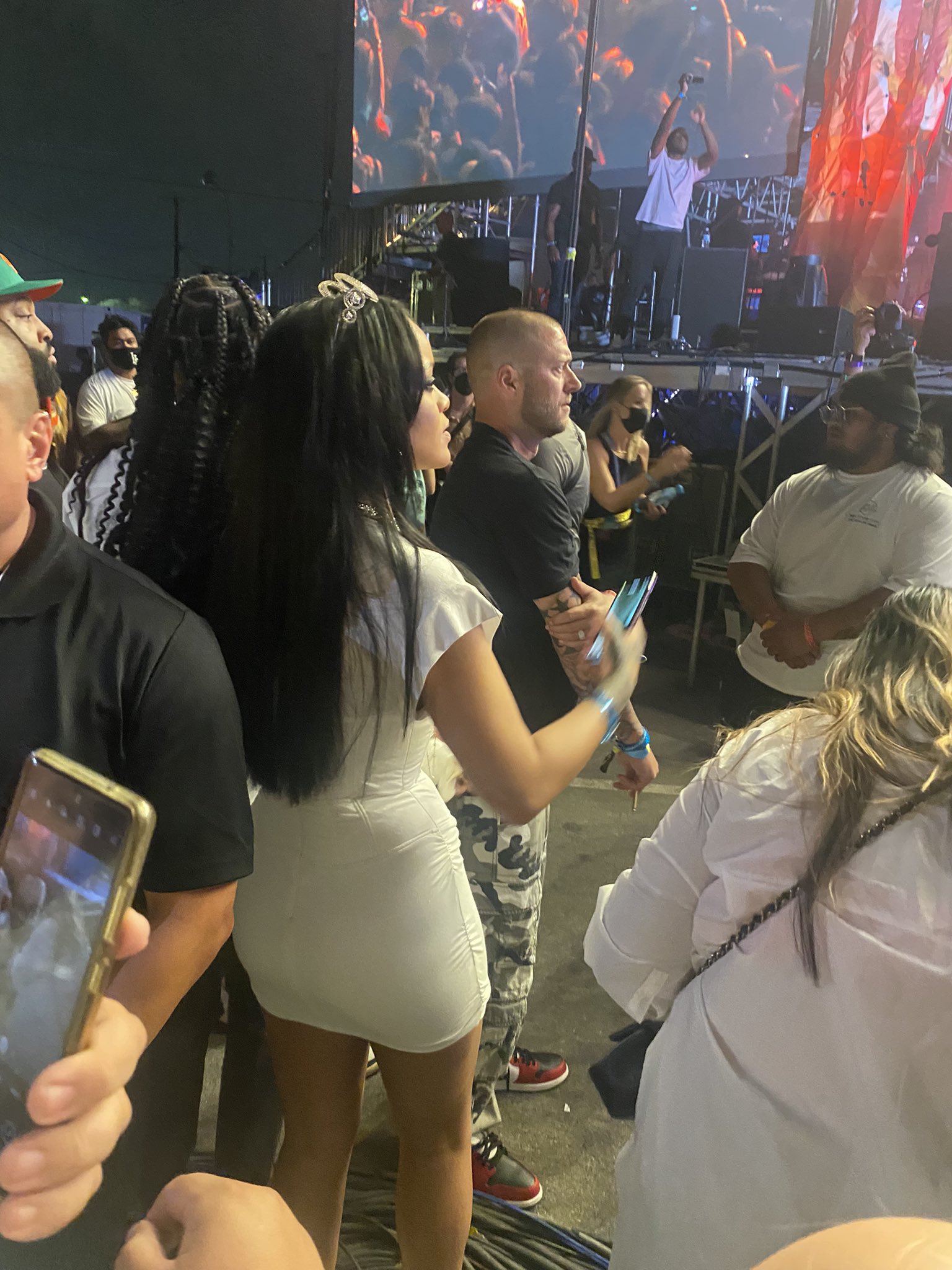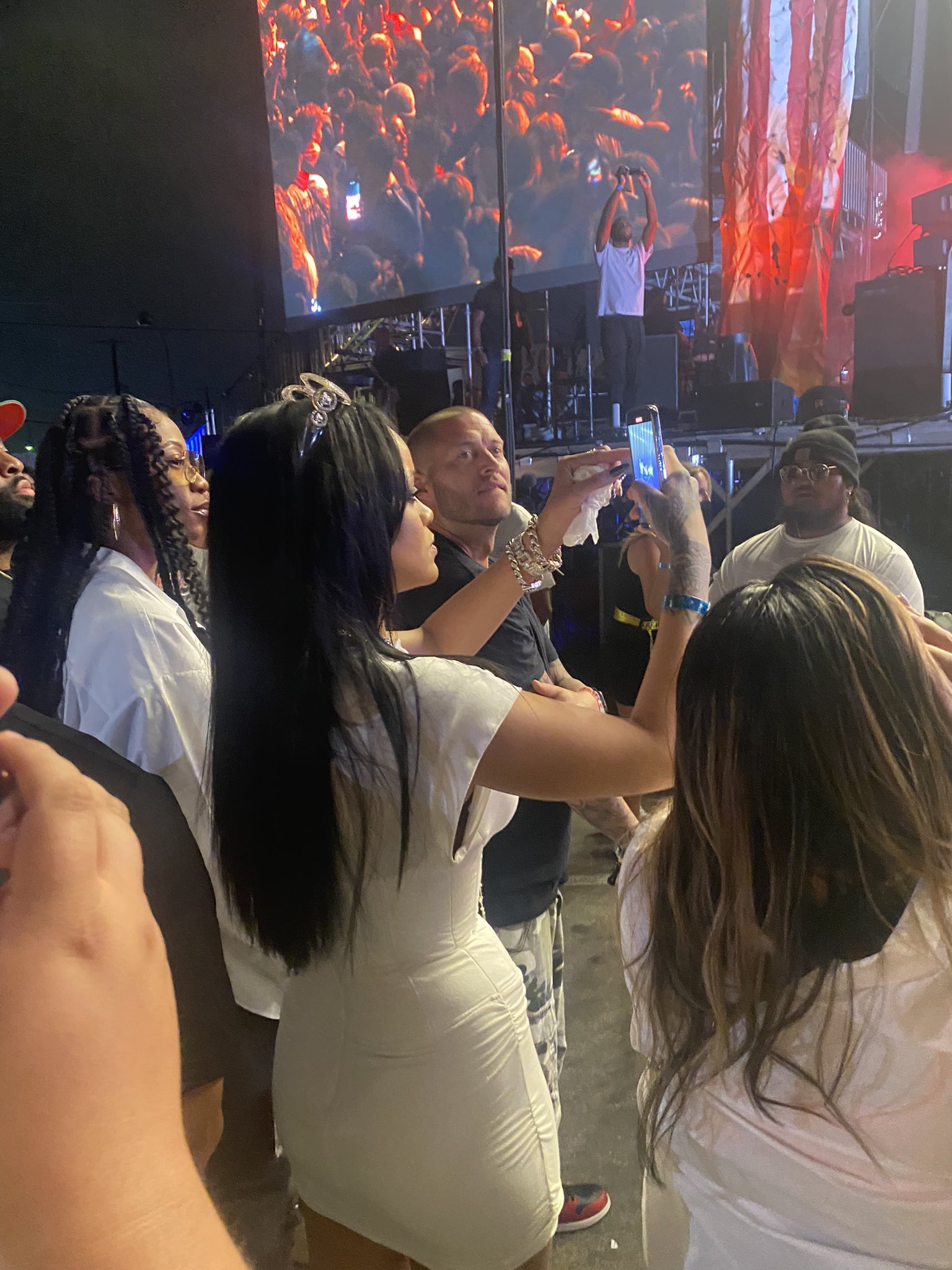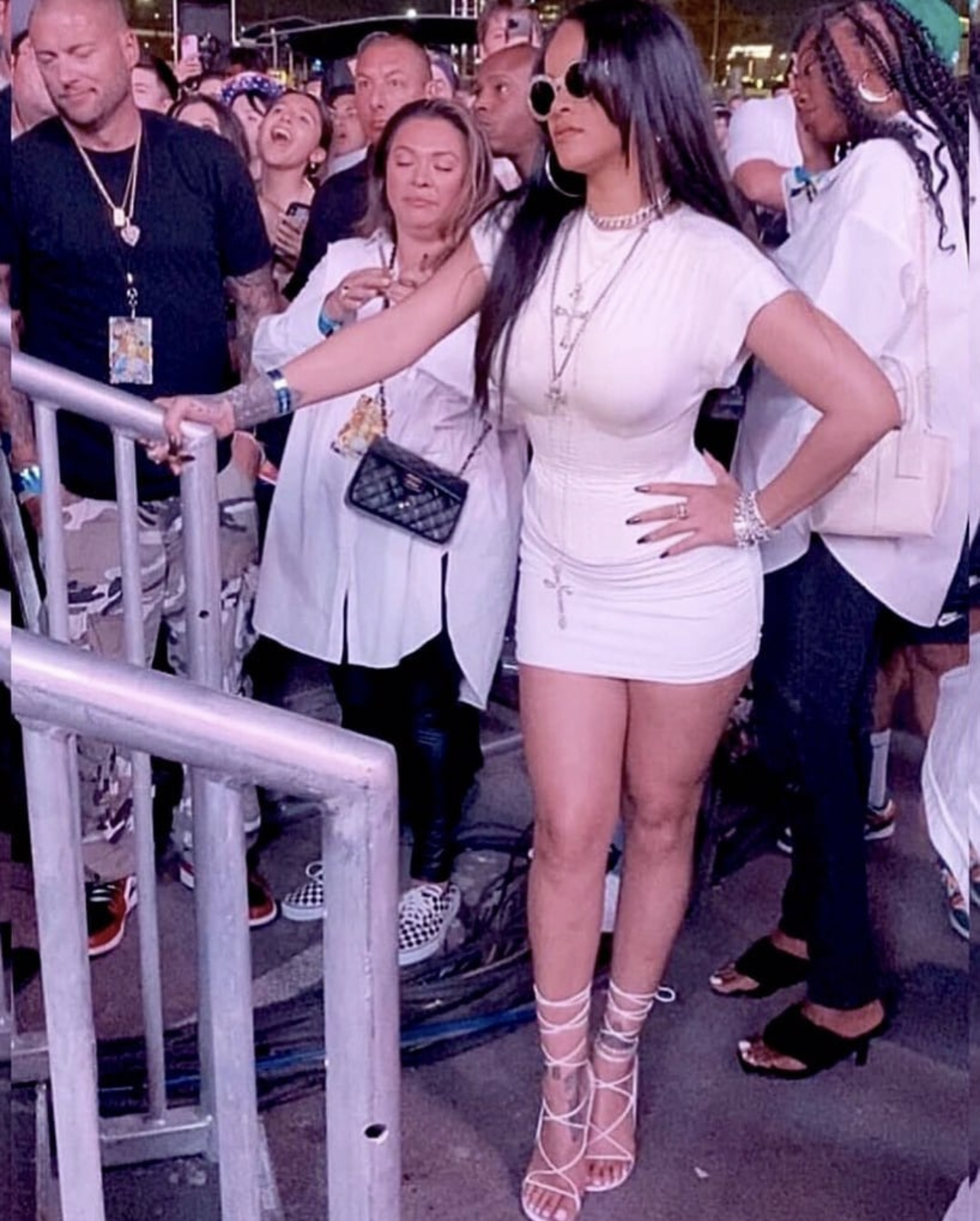 During A$AP Rocky’s performance, Rihanna happily captured the moment with her phone’s camera in addition to exchanging “air kisses” with her beau!