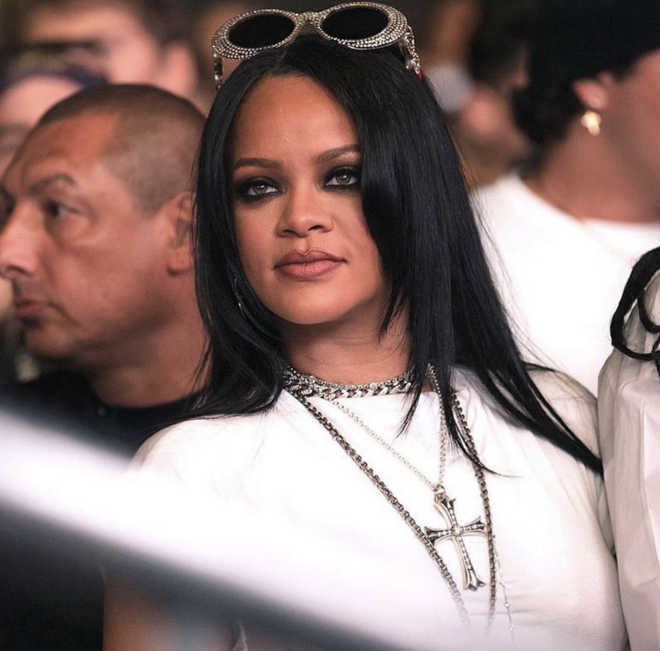 Rihanna wore the white corset t-shirt mini dress fresh off the runway from LaQuan Smith’s Spring 2022 collection, which debuted at NYFW roughly two weeks ago. The garment appears as a simple white t-shirt style mini dress complete with a waist-cinching corset. She pairs the look with vintage Versace 418 sunglasses and Loree Rodkin jewelry. She also finished the look with a pair of strappy white heeled sandals. Her look was styled by Jahleel Weaver.