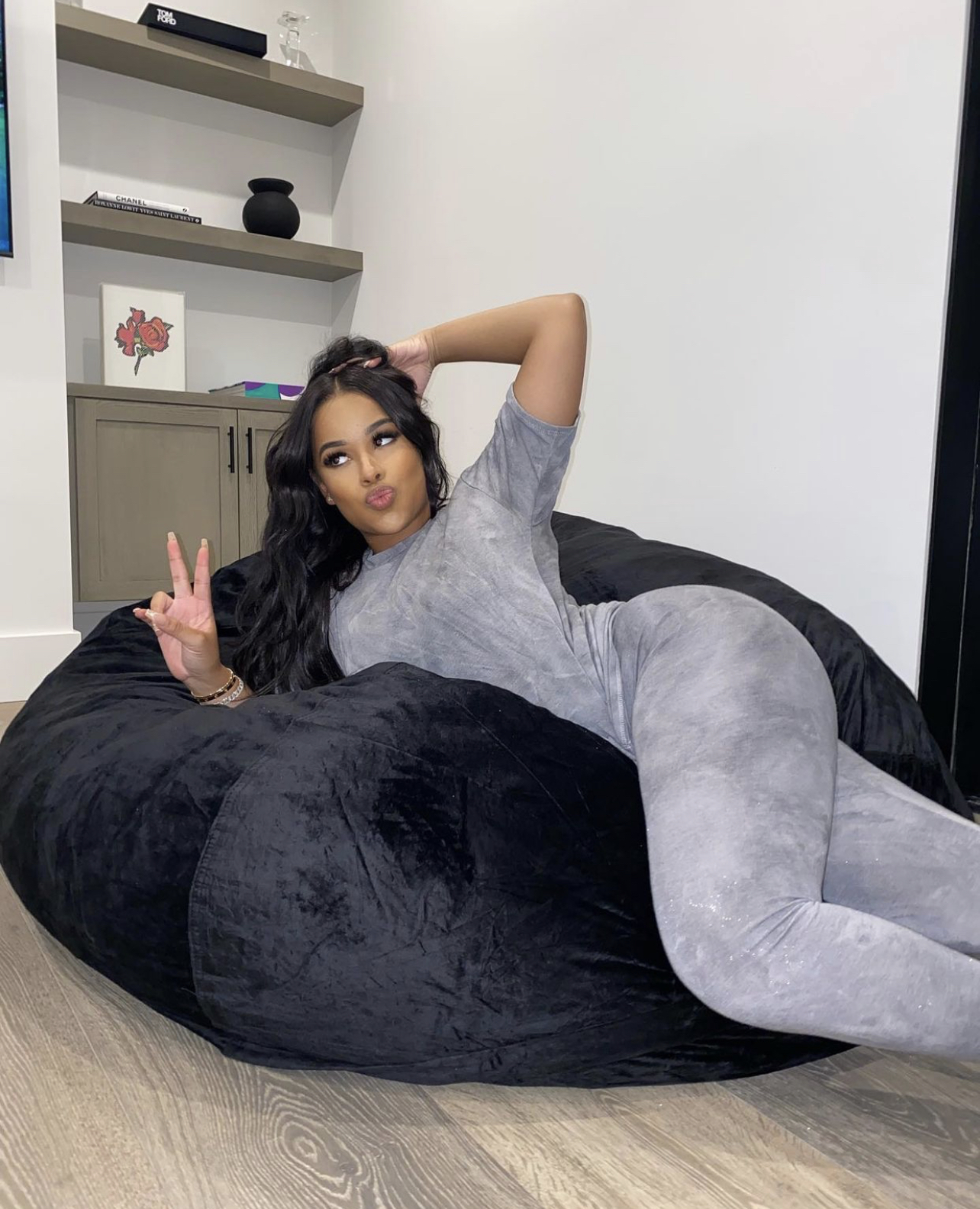 Taina Williams was spied lounging and getting ready for what seemed to be a movie night. While relaxing, she wore a comfy grey t-shirt and legging set from Fashion Nova.