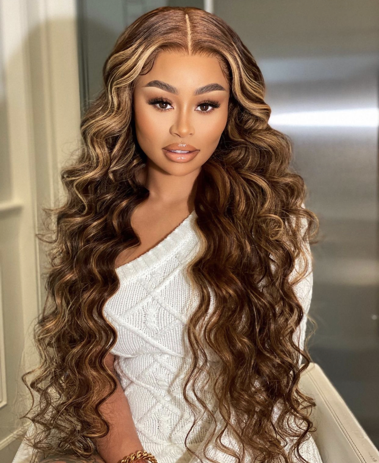 Blac Chyna recently took to the ‘gram to unveil her new highlighted wavy hairstyle. As she showed off her new stunning hairdo, she rocked a one shoulder cable knit sweater dress from Fashion Nova.