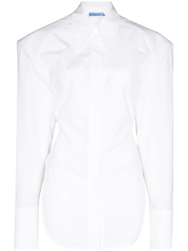 It is no secret that her Mugler structural white top is the star piece of this look. The $1,990 top serves a fresh take on the classic button shirt with updates including a sexy open back with a tie detail and dramatically broadened shoulders. Pairing this shirt with your favorite denim bottoms, like Chavis, will surely give you a significant yet casual look for an outing.