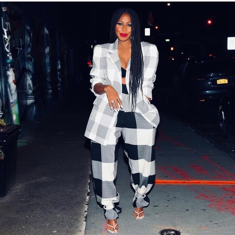 Layering is a key element to Fall wardrobe and Kahlana executes flawlessly with her chic street style. Pairing sweat pants and heels allows for comfortability and edge. She does a great job at balancing volume and creating interesting silhouettes with her attire. From hair and make up to accessories, this Bombshell is put together from head to toe.