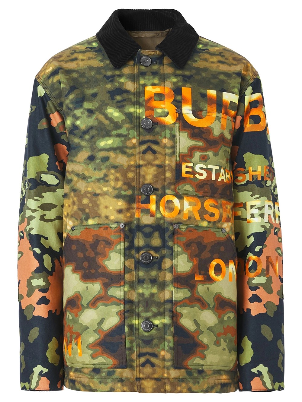 Nelly wore a Burberry look including the brand’s $2,190 camo print jacket and $480 swim shorts. He also wore a pair of the Air Jordan 3 “Laser Orange” sneakers.