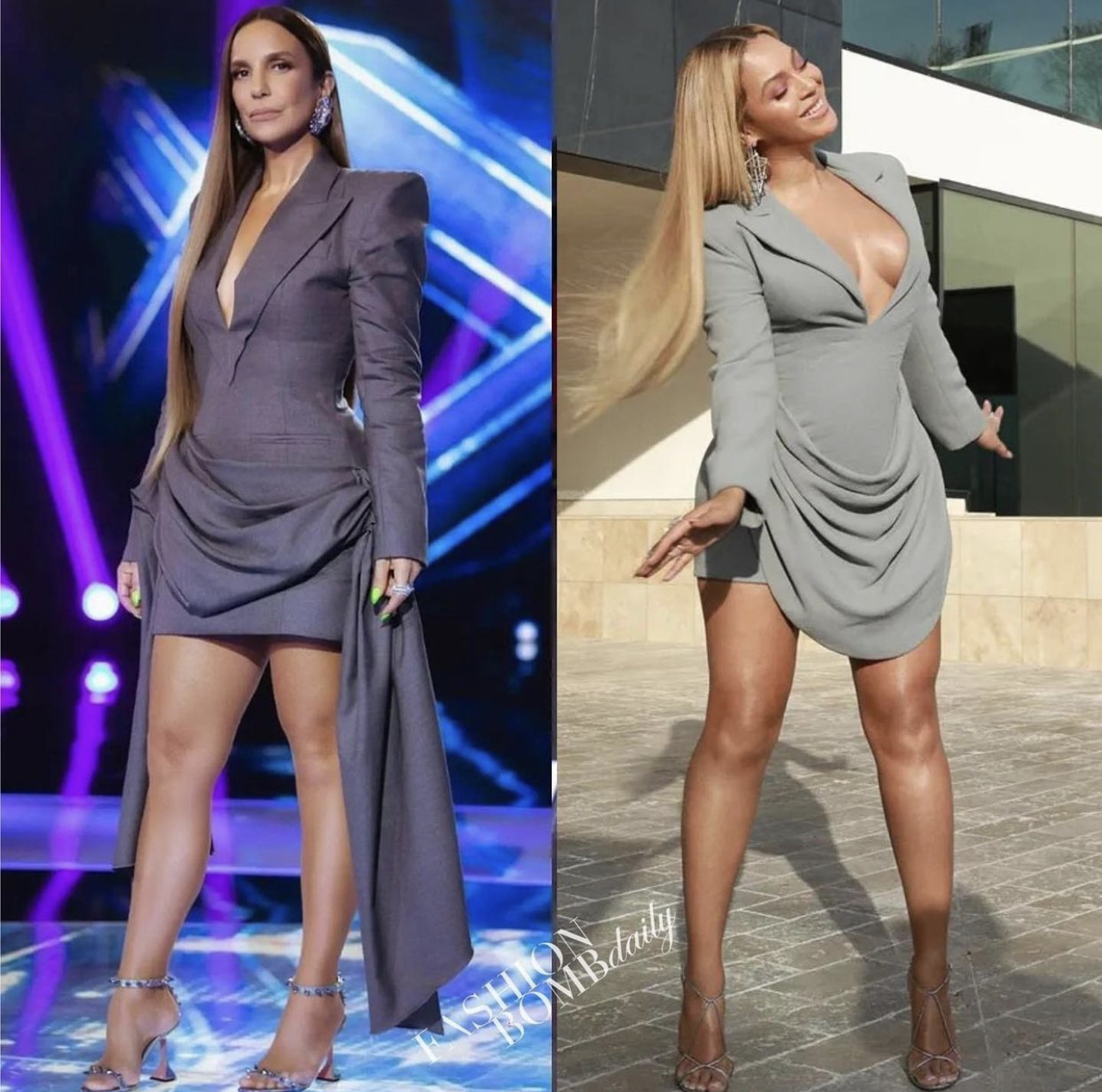 Brazilian singer and TV host Ivete Sangalo and Beyoncé both seem to be fans of designer Francesco Murano as the two were spotted in his iconic jacket dress.